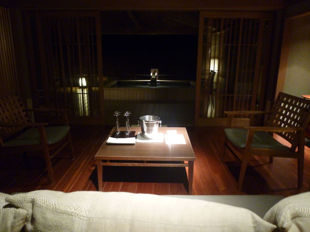 部屋に戻り、縁側にて日本庭園を臨みます。