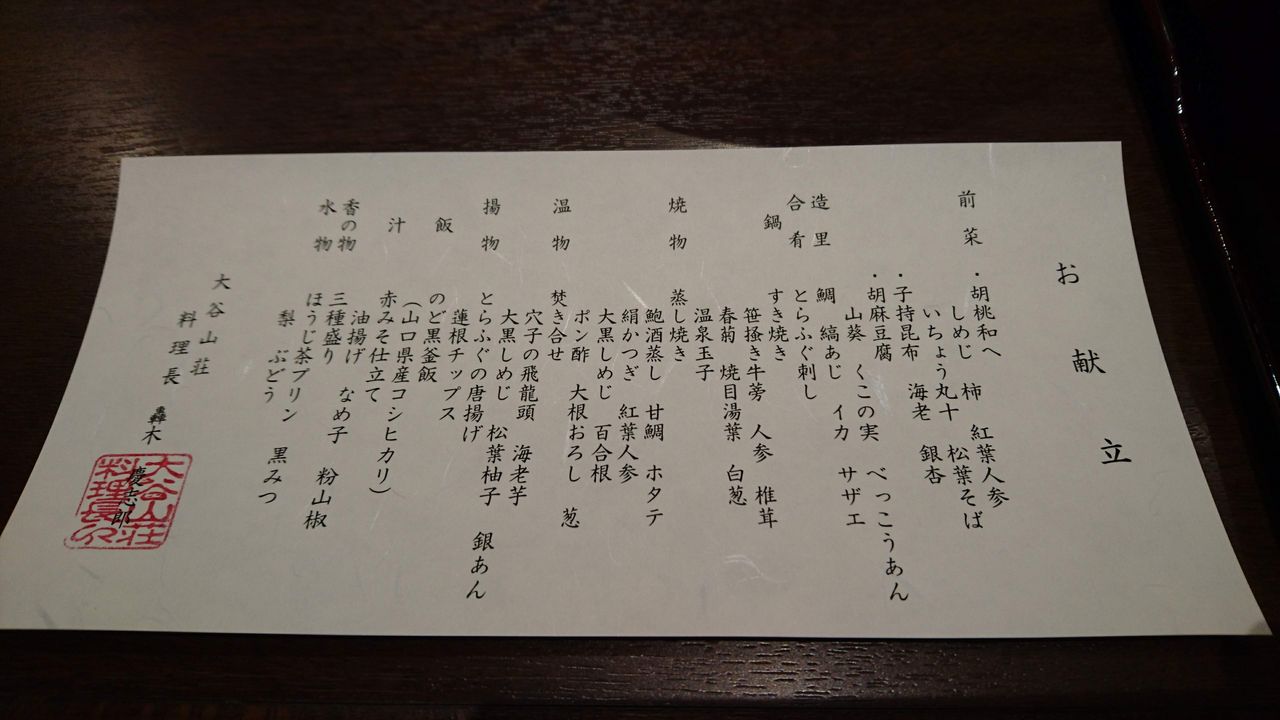 大谷山荘 別邸音信 の滞在にて書いていますので、ご参照頂けたら幸いです。
