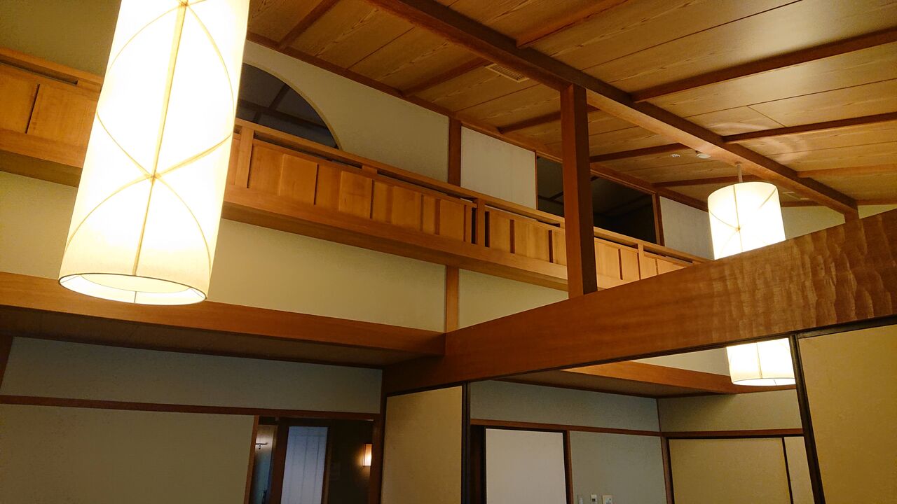 そして、和室から見上げると、大きな照明の先に空間が。