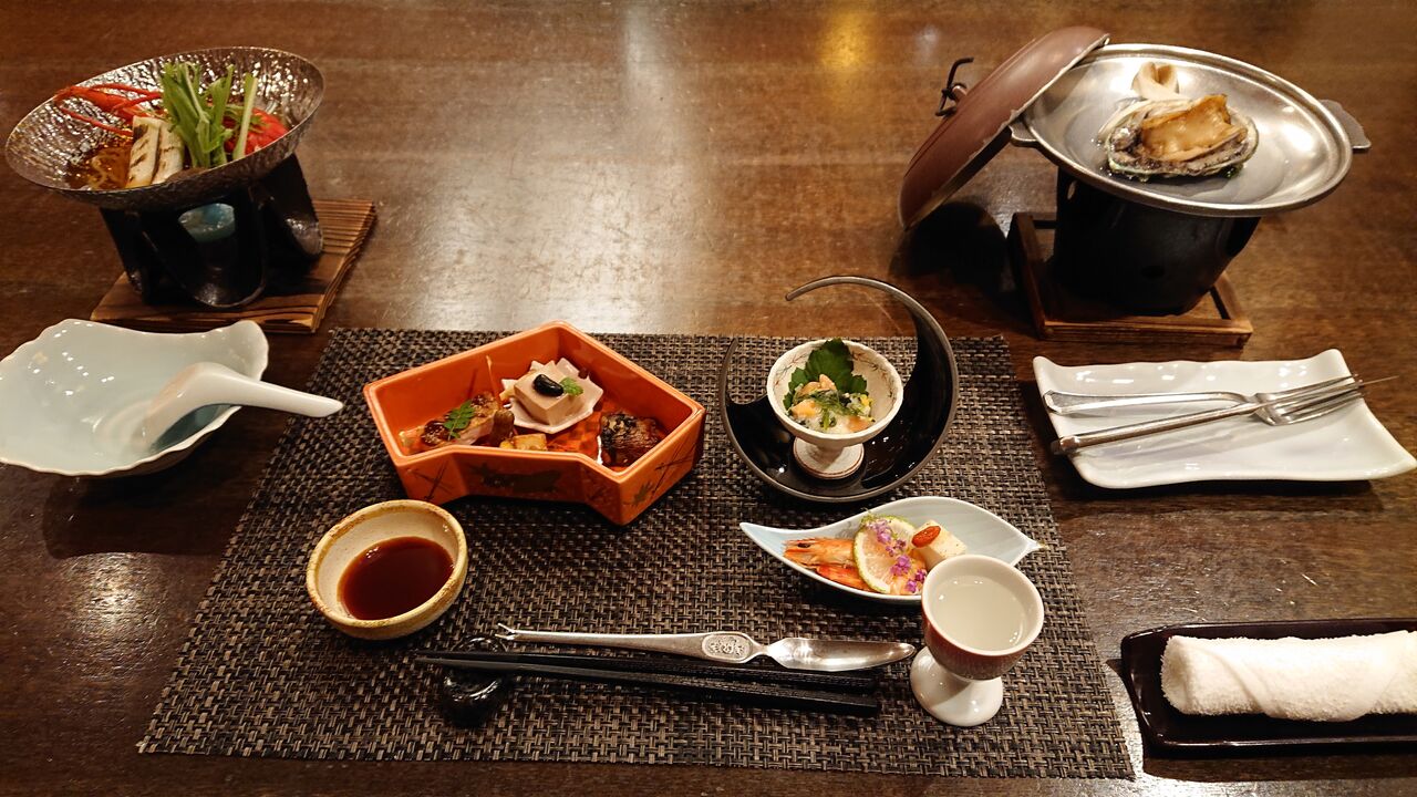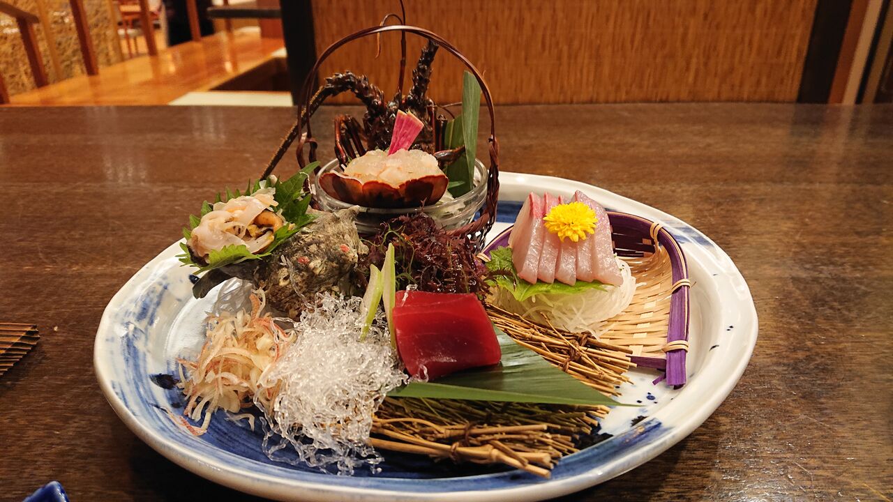 夕食は、食材に伊勢海老2品、鮑、さざえと高級なものがでてきます。