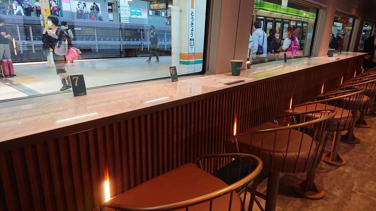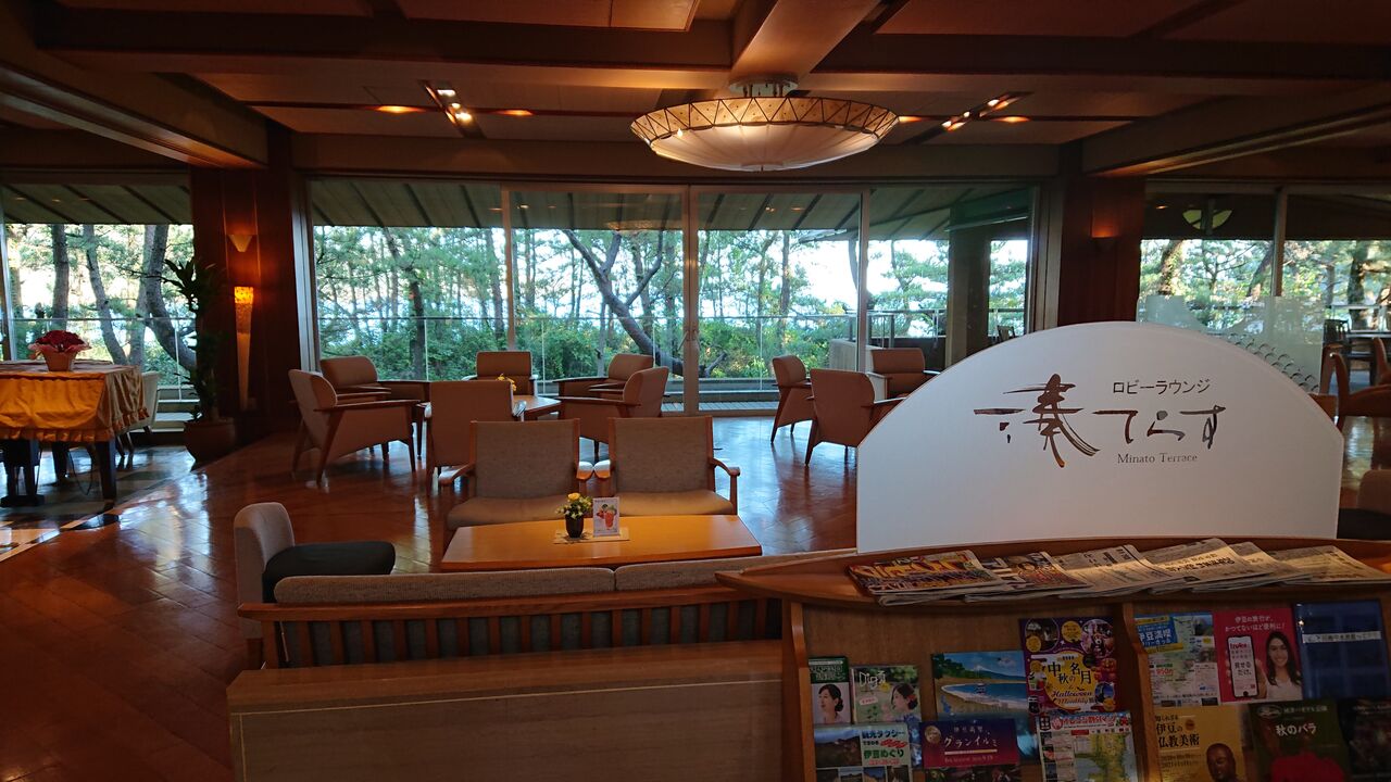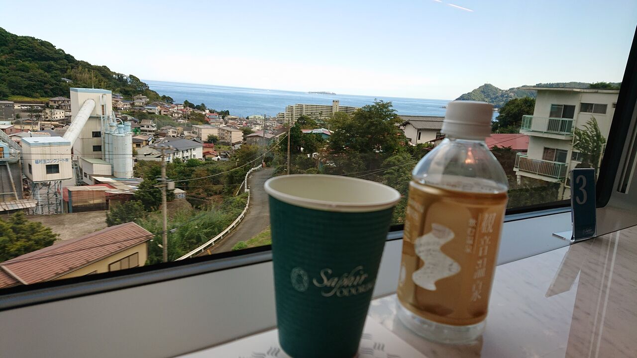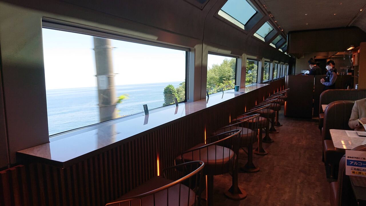 カフェテリアにて、伊東駅手前までの景色を楽しみました。聞いたところ、いまはコロナ対策で各枠予約は6食限定なのだそうです。