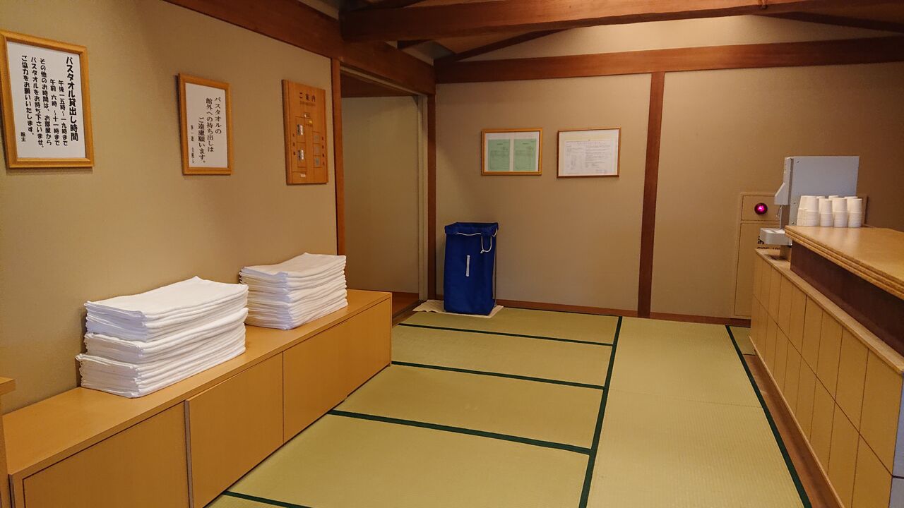バスタオルは時間限定で、大浴場に用意されています。