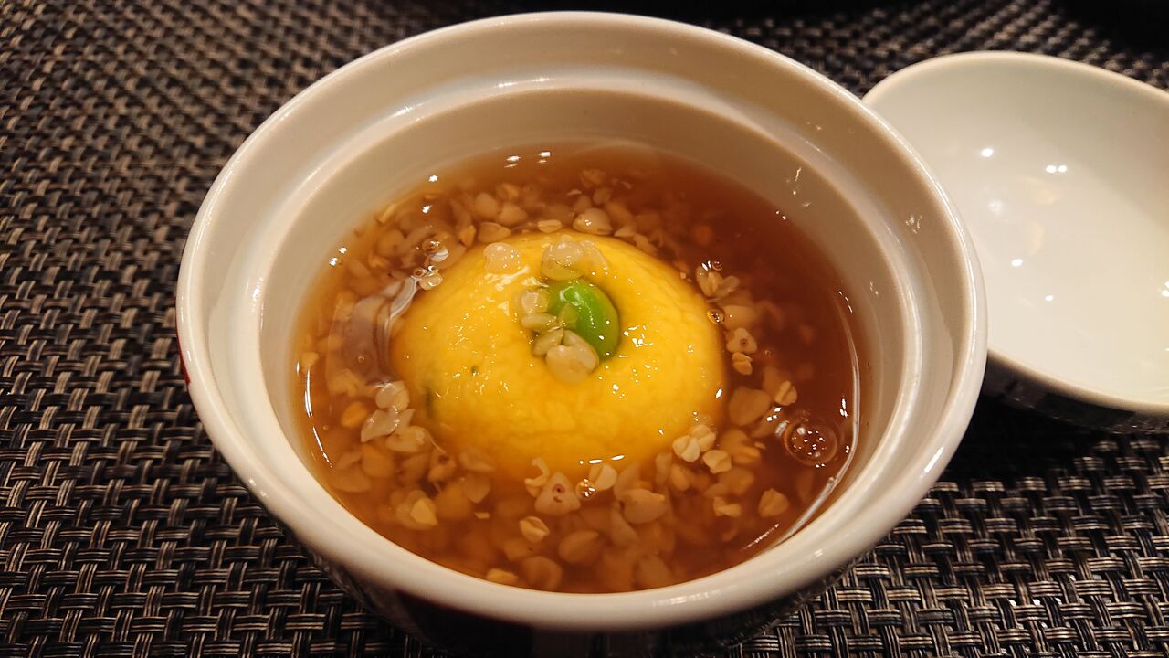 前菜 秋の盛り秋刀魚わた焼き・胡桃豆腐・サーモンとろろ