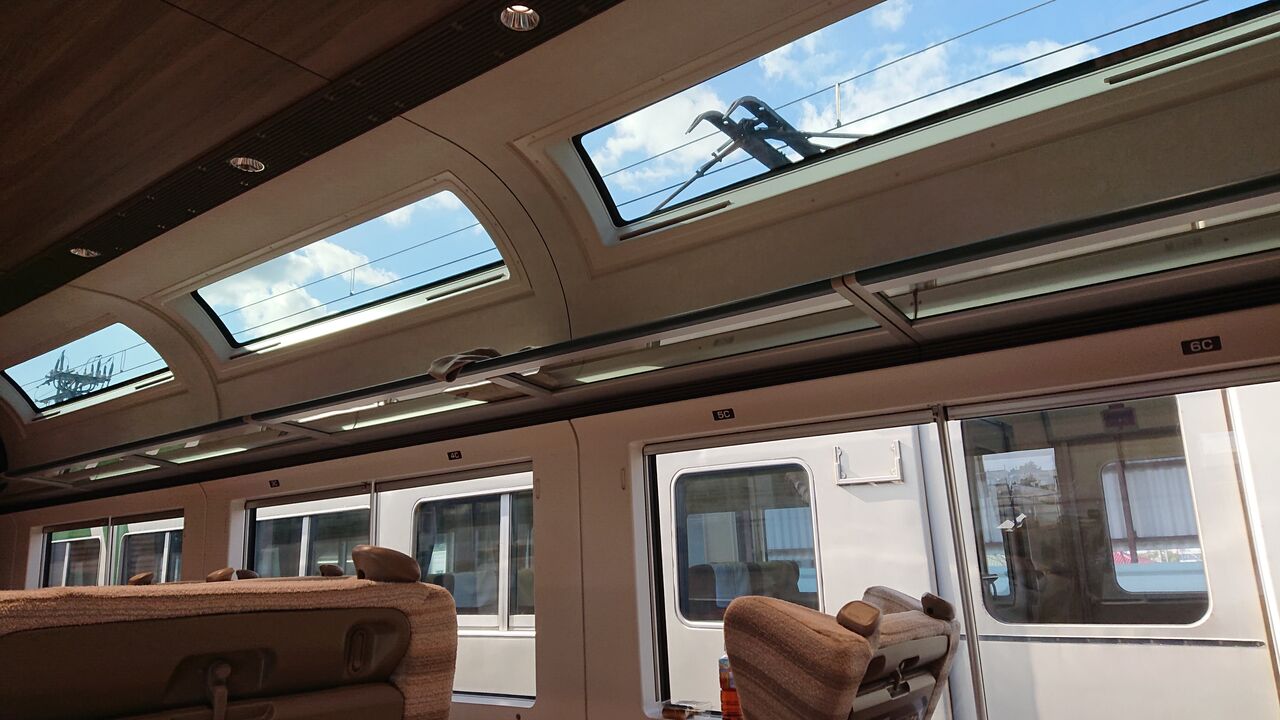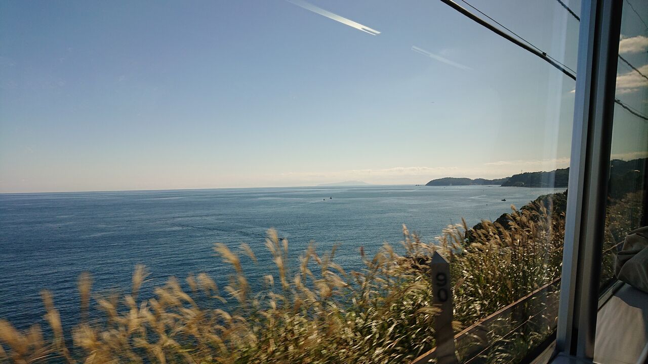 座席に戻り、伊豆急沿いの海の景色が続き、