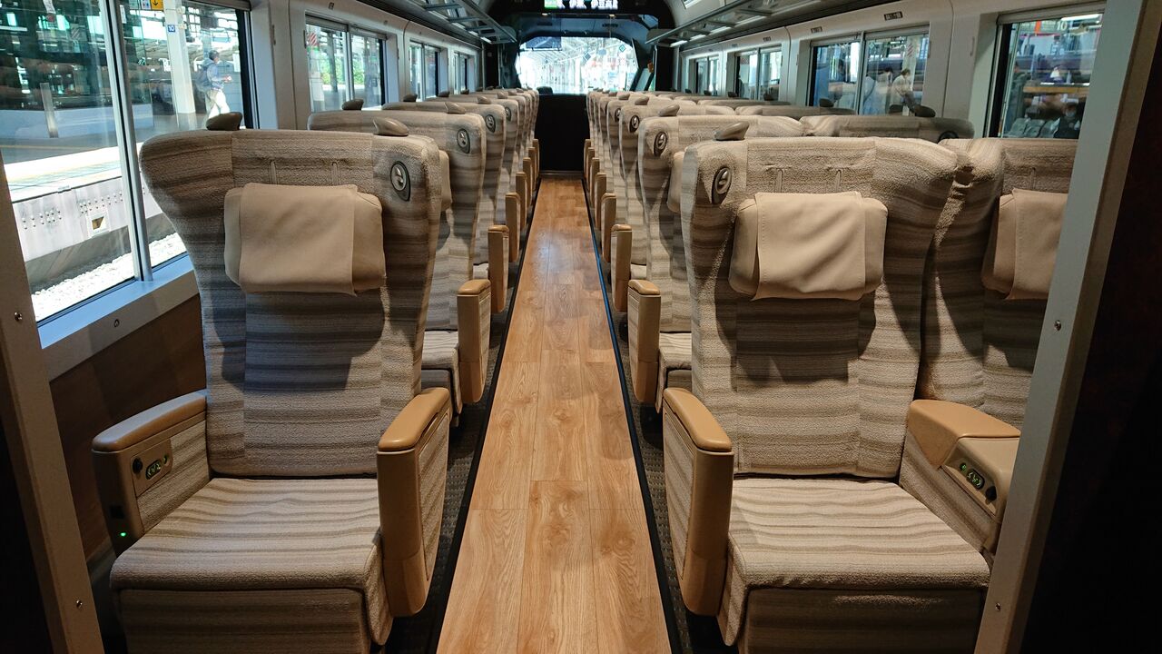 1号車はプレミアムグリーン車。2席並びの空間です。