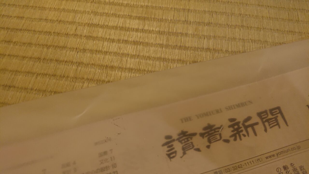 部屋にはドアスルーで新聞が届いていました。