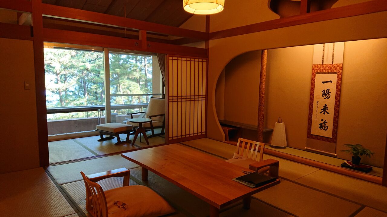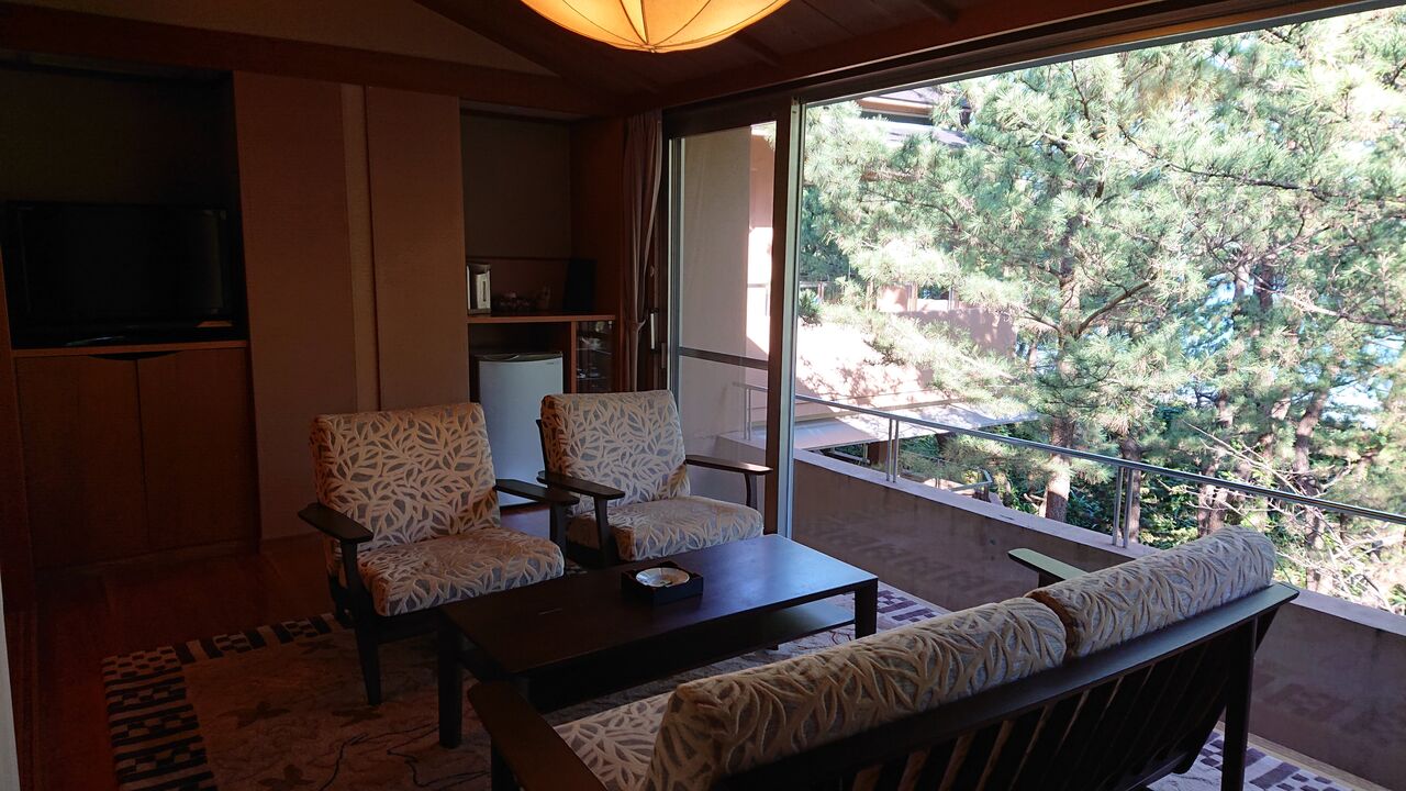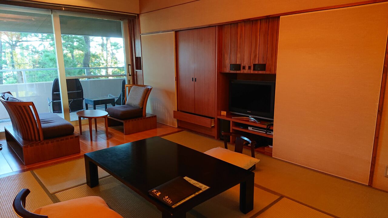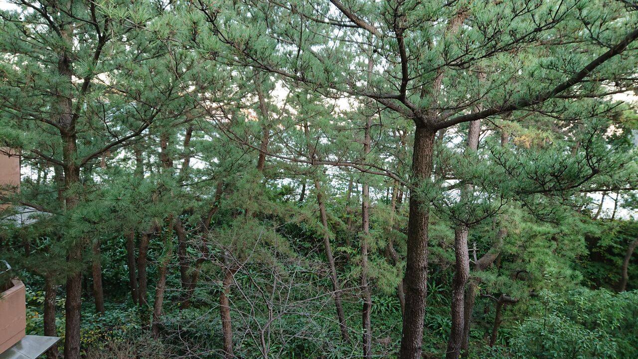 窓からの景色は、松林です。海は見通せませんが、松林の先からは、波の音が心地よい。
