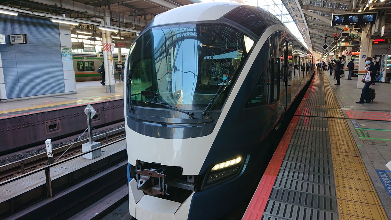 今春導入のグリーン車だけの特急で、ホームから写真を撮っている人がたくさん。