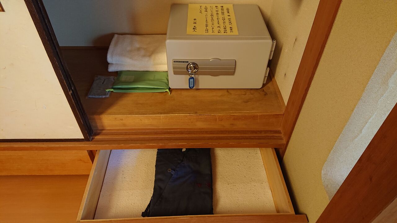 館内着は、浴衣でなく作務衣。タオルは部屋から持参です。