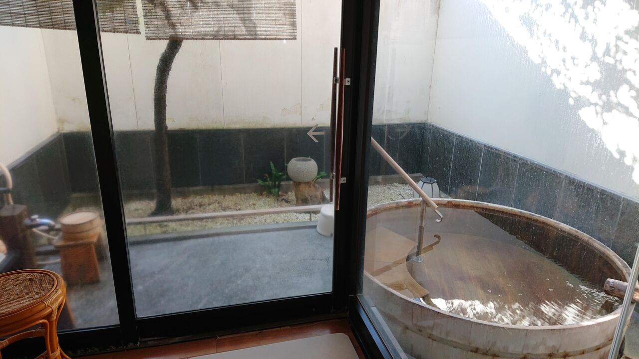 季の倶楽部 温泉露天風呂付きメゾネットスイート 浪漫324入ると、露天風呂のフロア。
