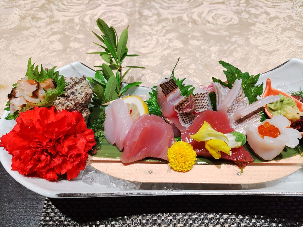 刺身は、さざえ、めだい、ひらまさ、あえさき、かつお、たちうお、もんごういか。