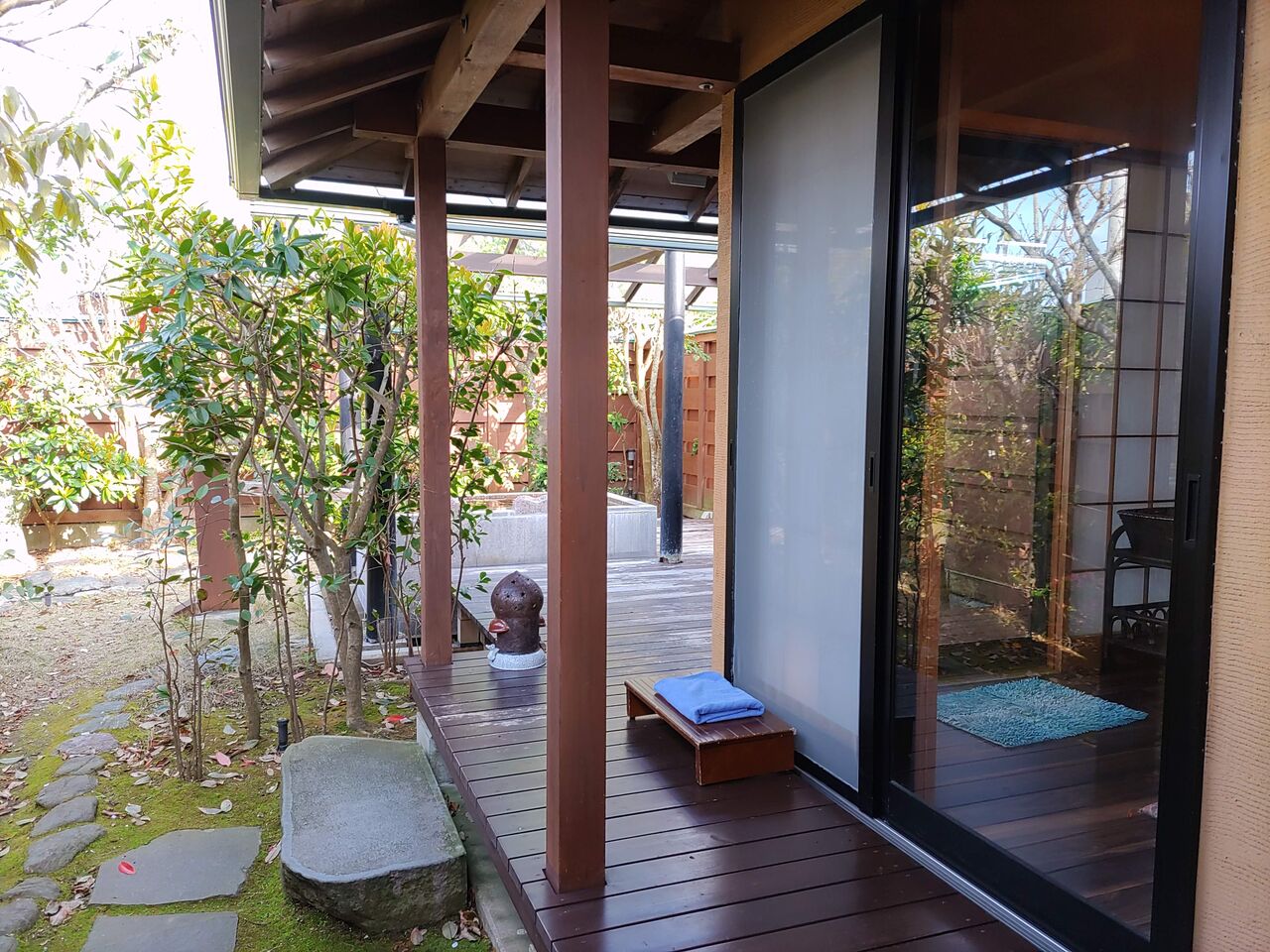 個室の建屋と、その先に露天風呂。