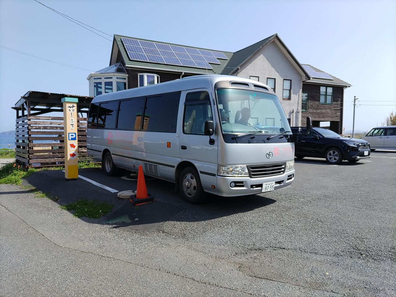 板塀の裏は、花しぶき別邸 雫花 と、花しぶきの駐車場。
