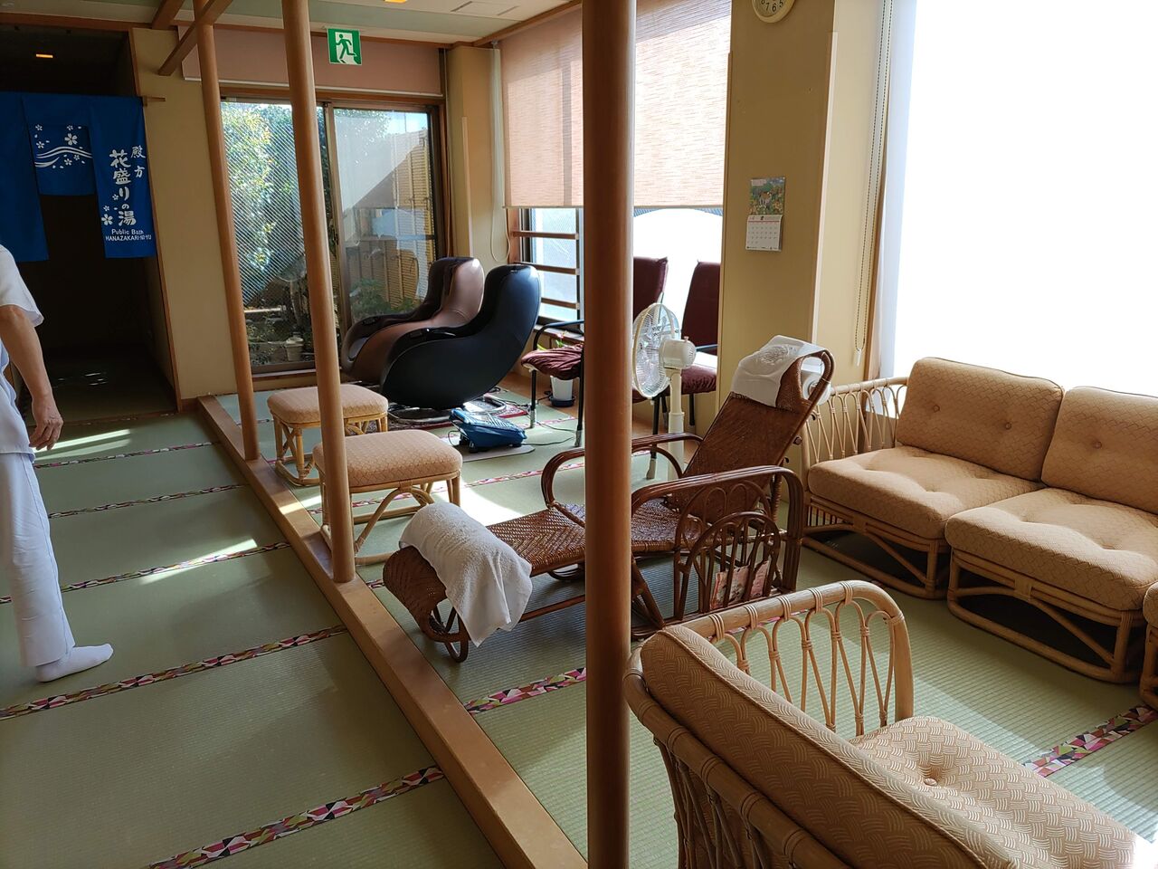 湯上がり処では、15時~18時に、湯上がり後の5分間足裏マッサージサービスがありました。足袋持参・入浴後との説明。