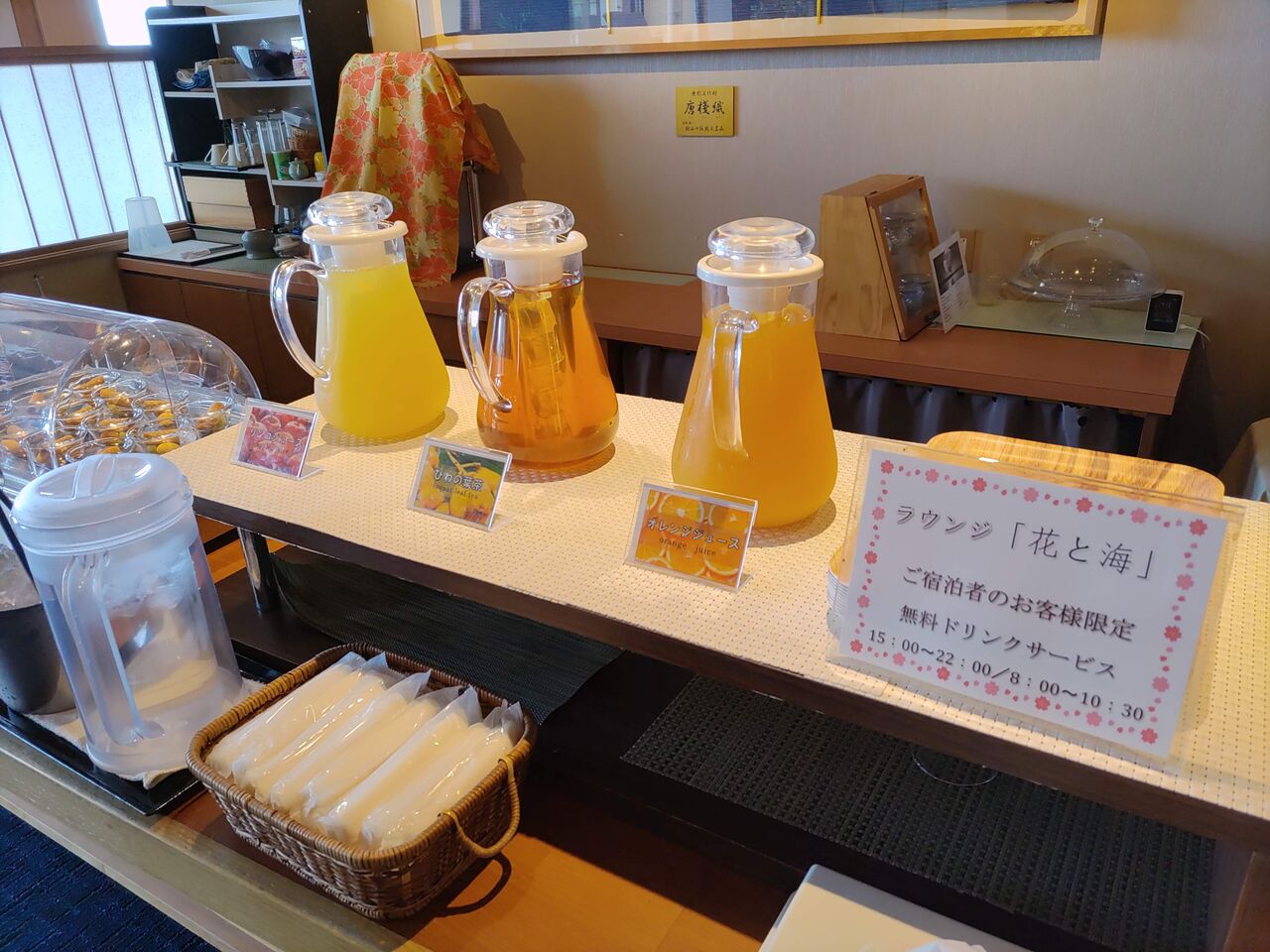 時間替わりの無料ドリンクサービス。