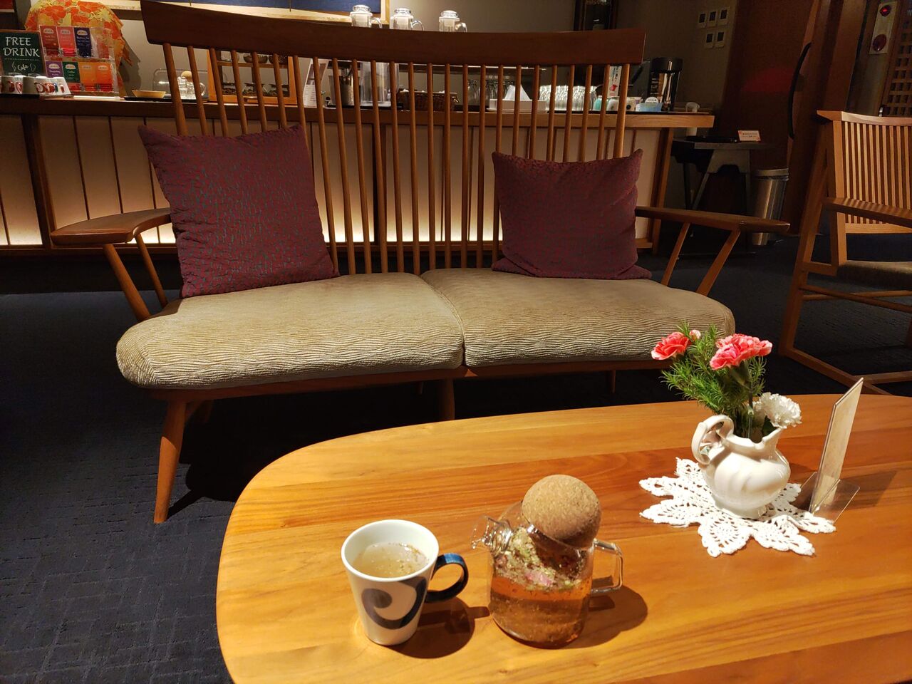 夕食後は、ロビーでハーブティーをいただき一服。