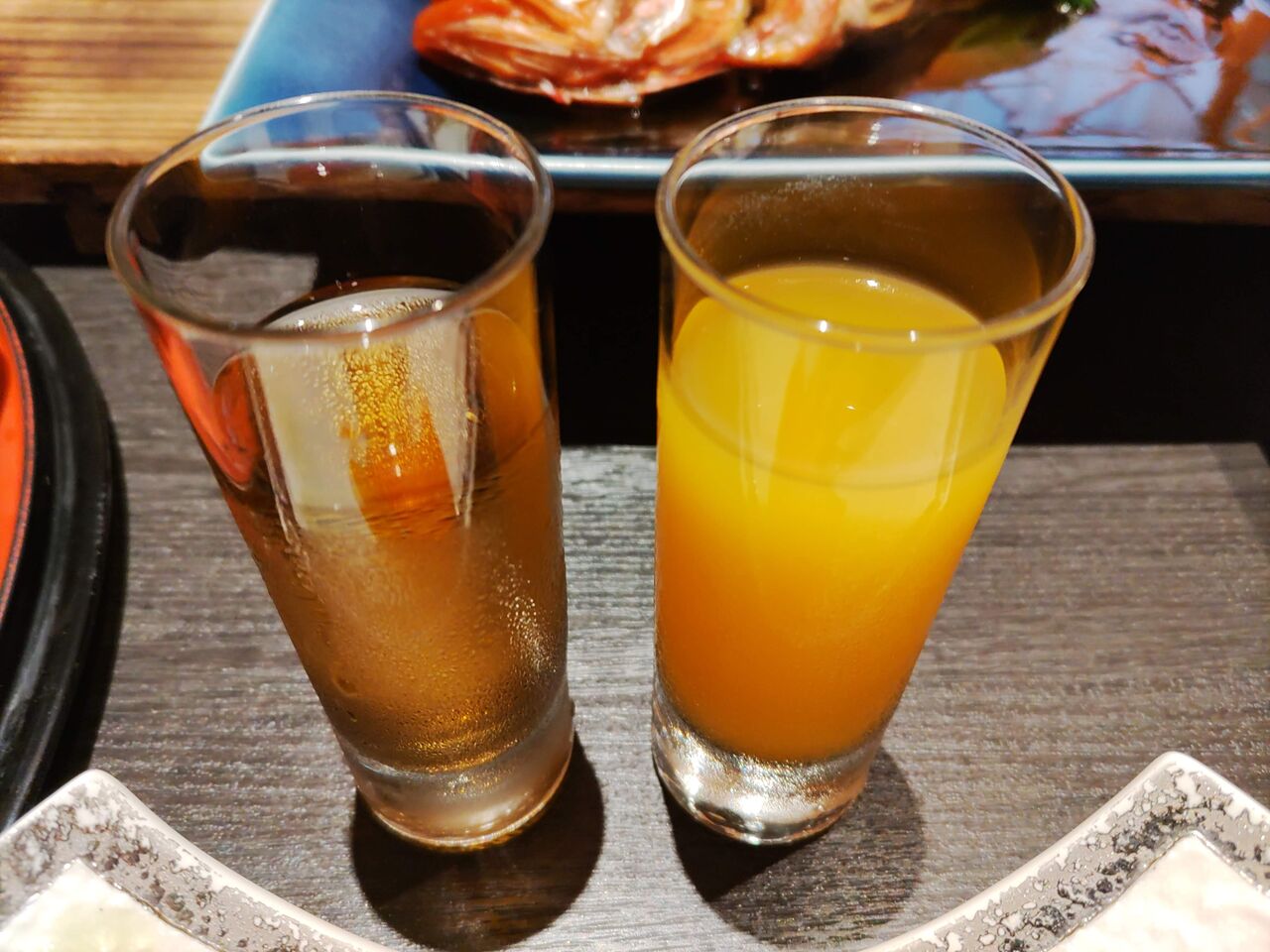 マンゴージュース、リンゴジュース。