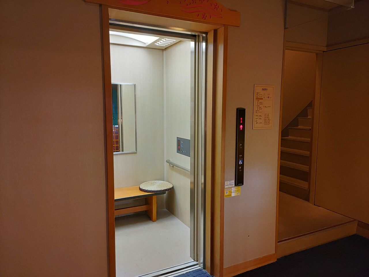 鍵を受け取り、自分でエレベーターに進みます。