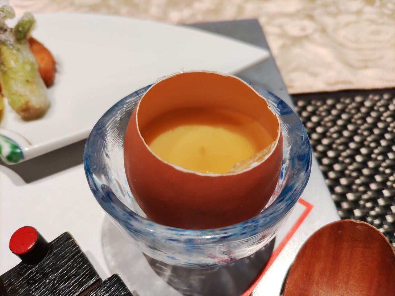スッポンの茶碗蒸しは、卵の殻を器にして。