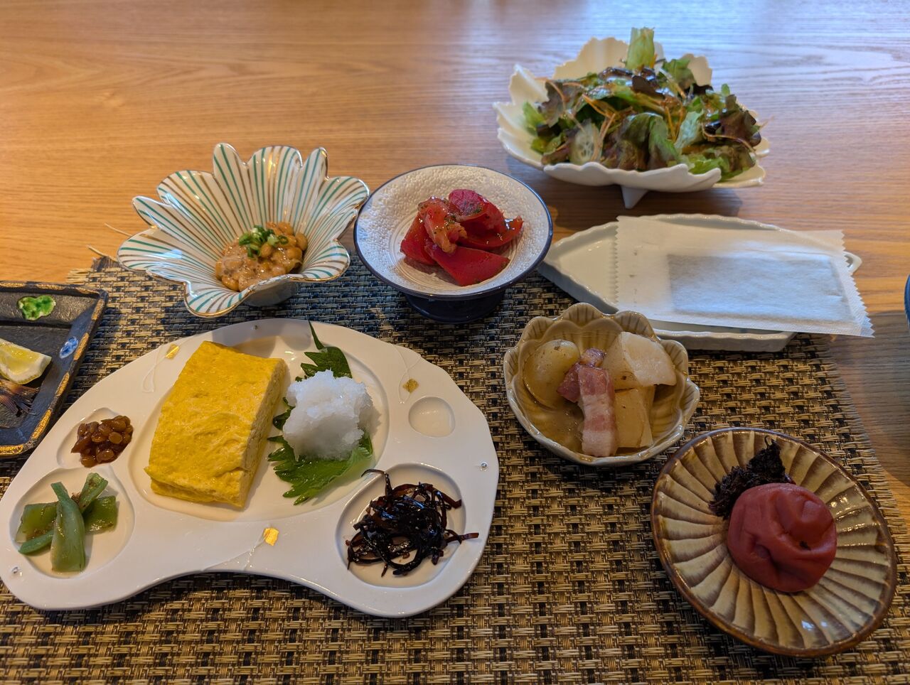 サラダ、納豆、トマト、海苔、