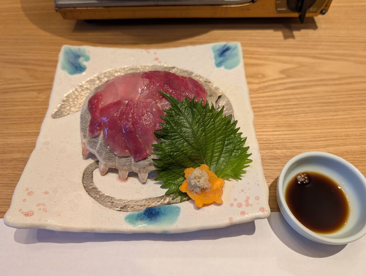 調味料の陶器もすっぽん。