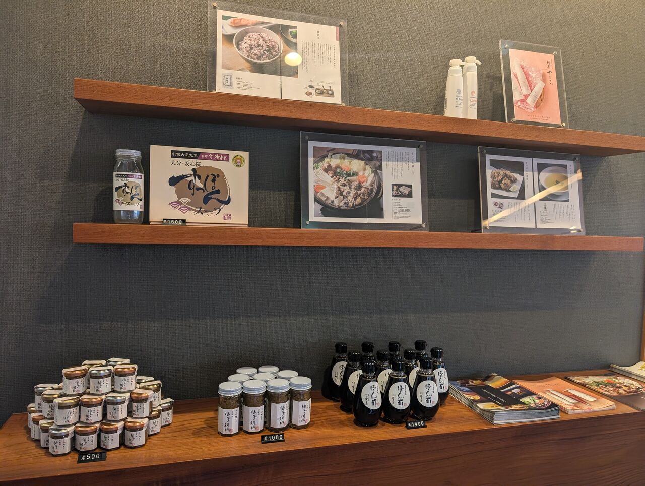 すっぽんスープや柚子胡椒。配送のすっぽん料理セットなどが置いてありました。