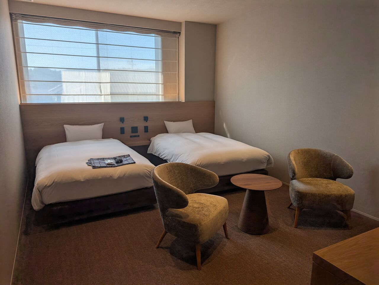 宿泊としては、きれいで機能的なビジネスホテルという感じ。必ずしも泊まらなくてもよし。