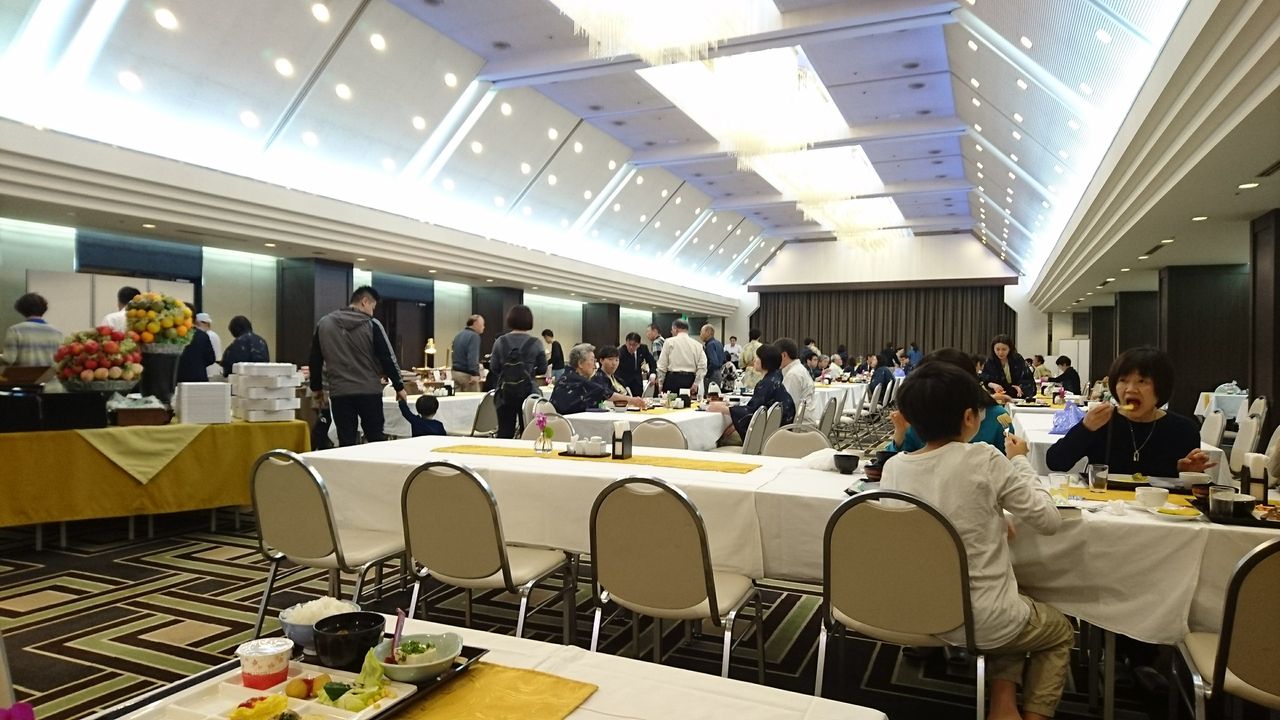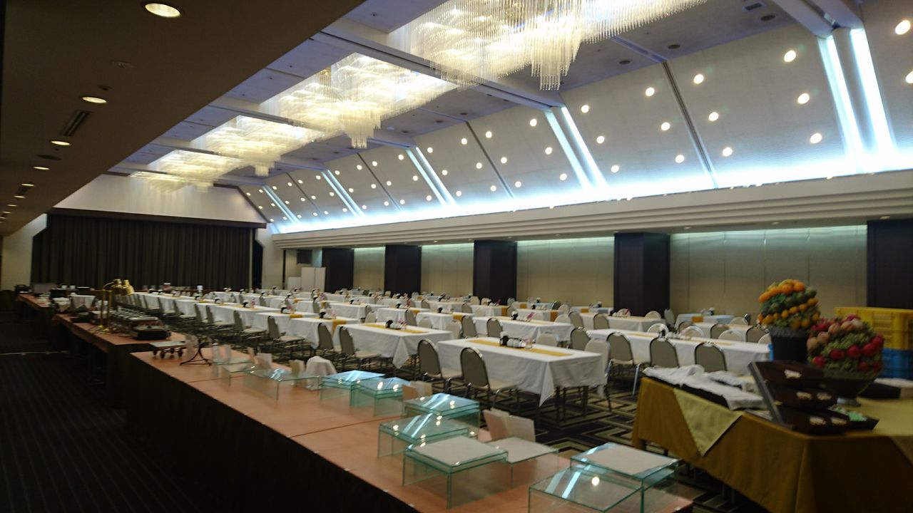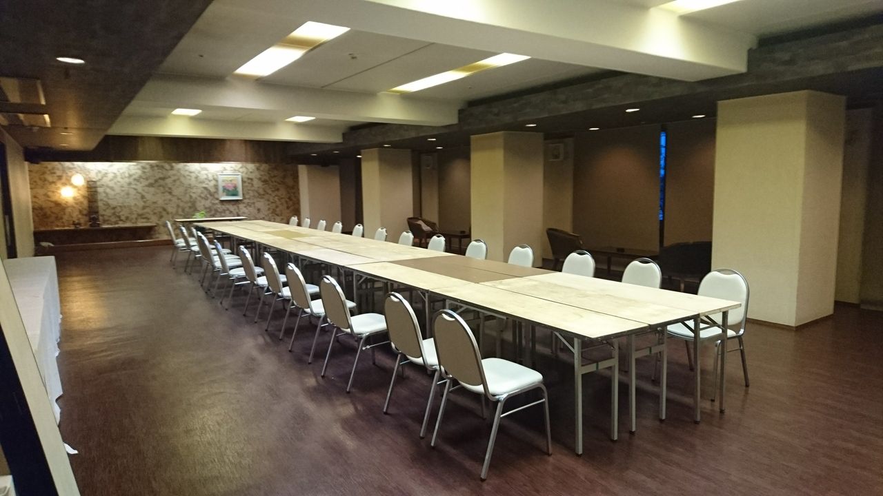 宴会場。宿泊フロアにあるため、天井は低いです。