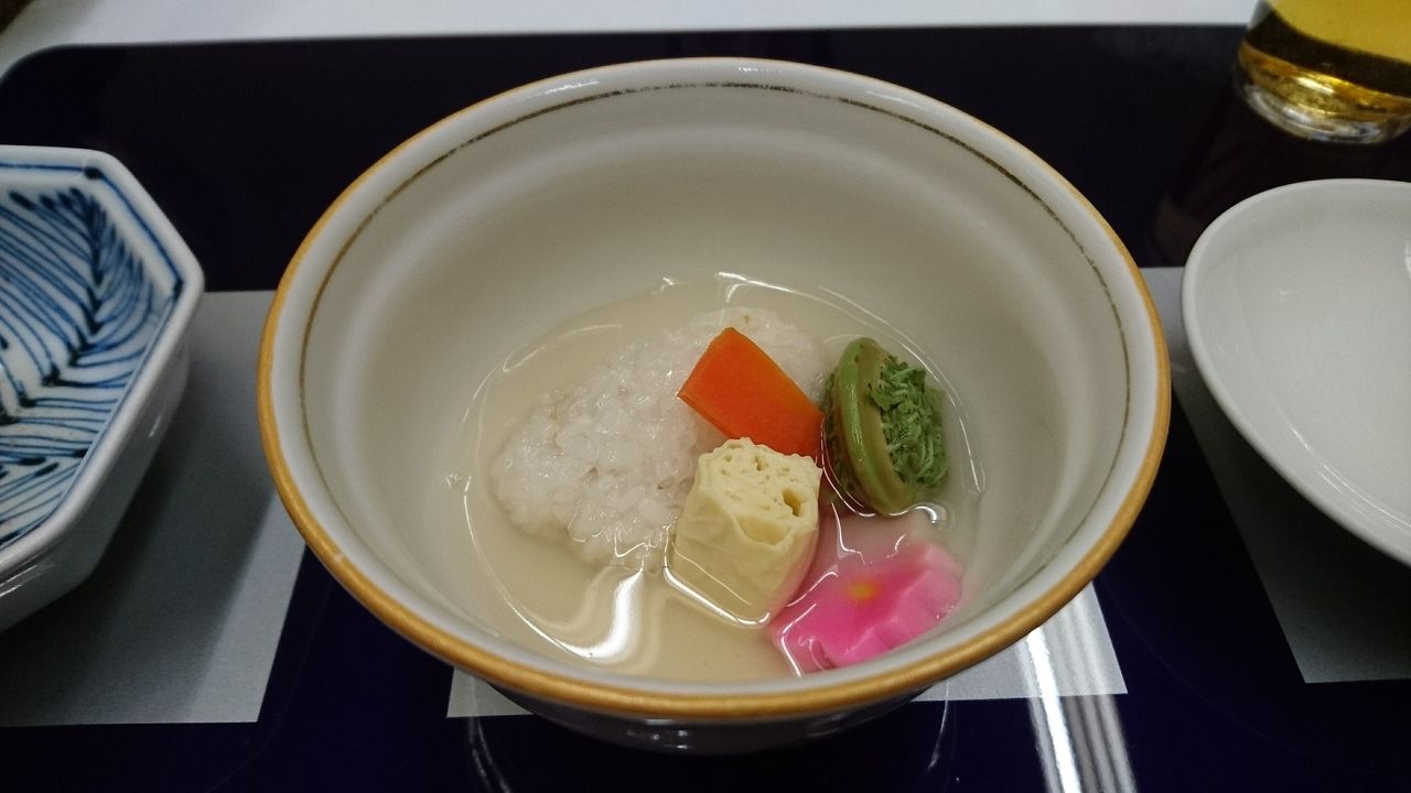 お通し 蓬豆腐 花びら百合根 小豆美味だしジュレ