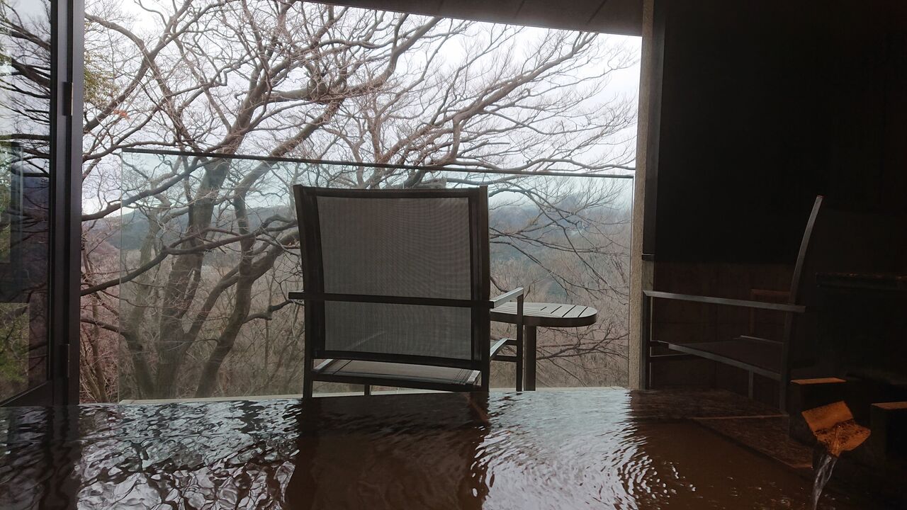 仙石原温泉は濁り湯で、なめると少しすっぱくて、鉄の味がします。