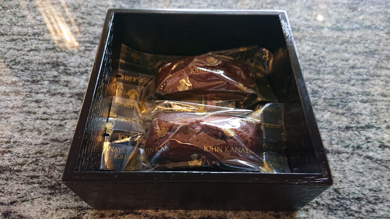 テーブルには、金谷リゾートオリジナルのフィナンシェショコラ。