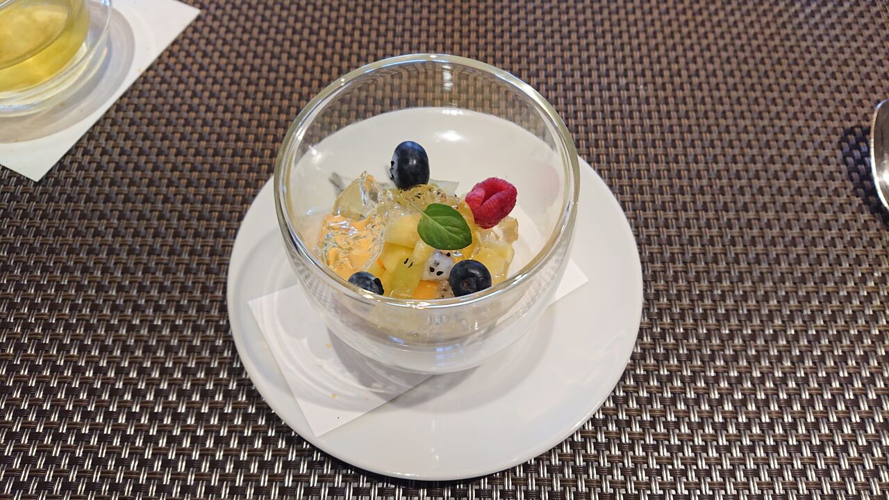フルーツに、白ワインを使ったジュレを添えて。