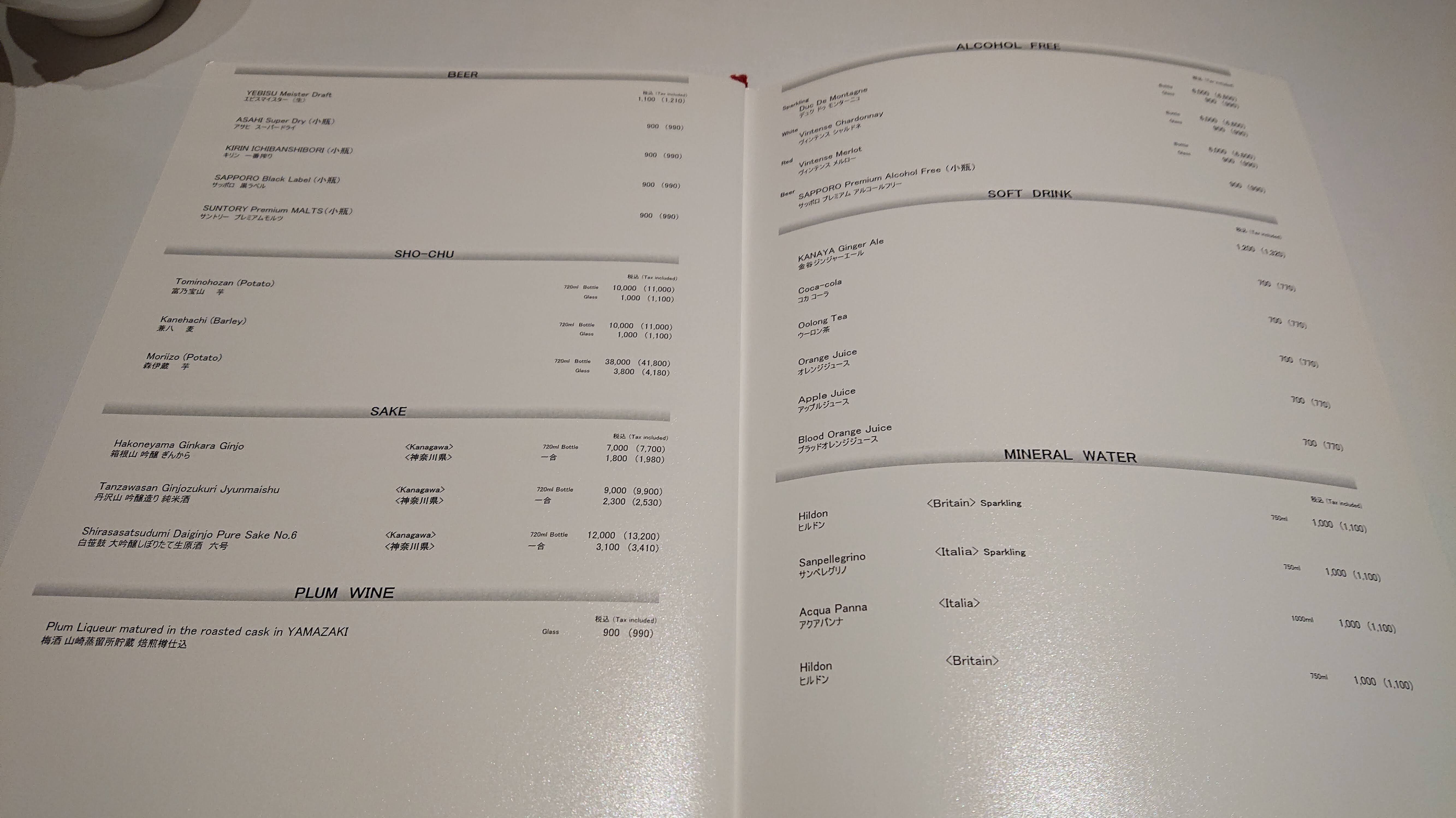 ビール、烏龍茶、炭酸水、洋なしジュースに加えて、