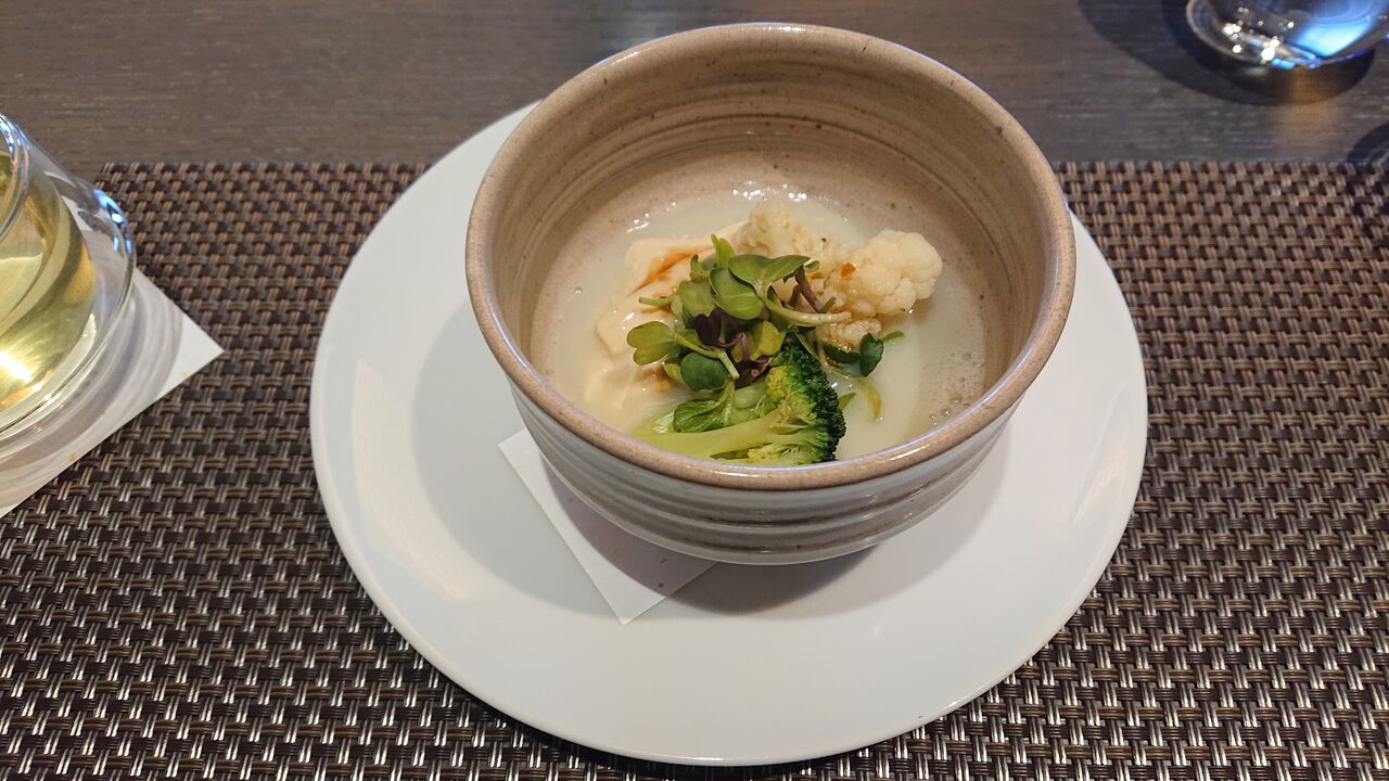 豆乳のあんかけと、中に湯葉を仕込んでありました。