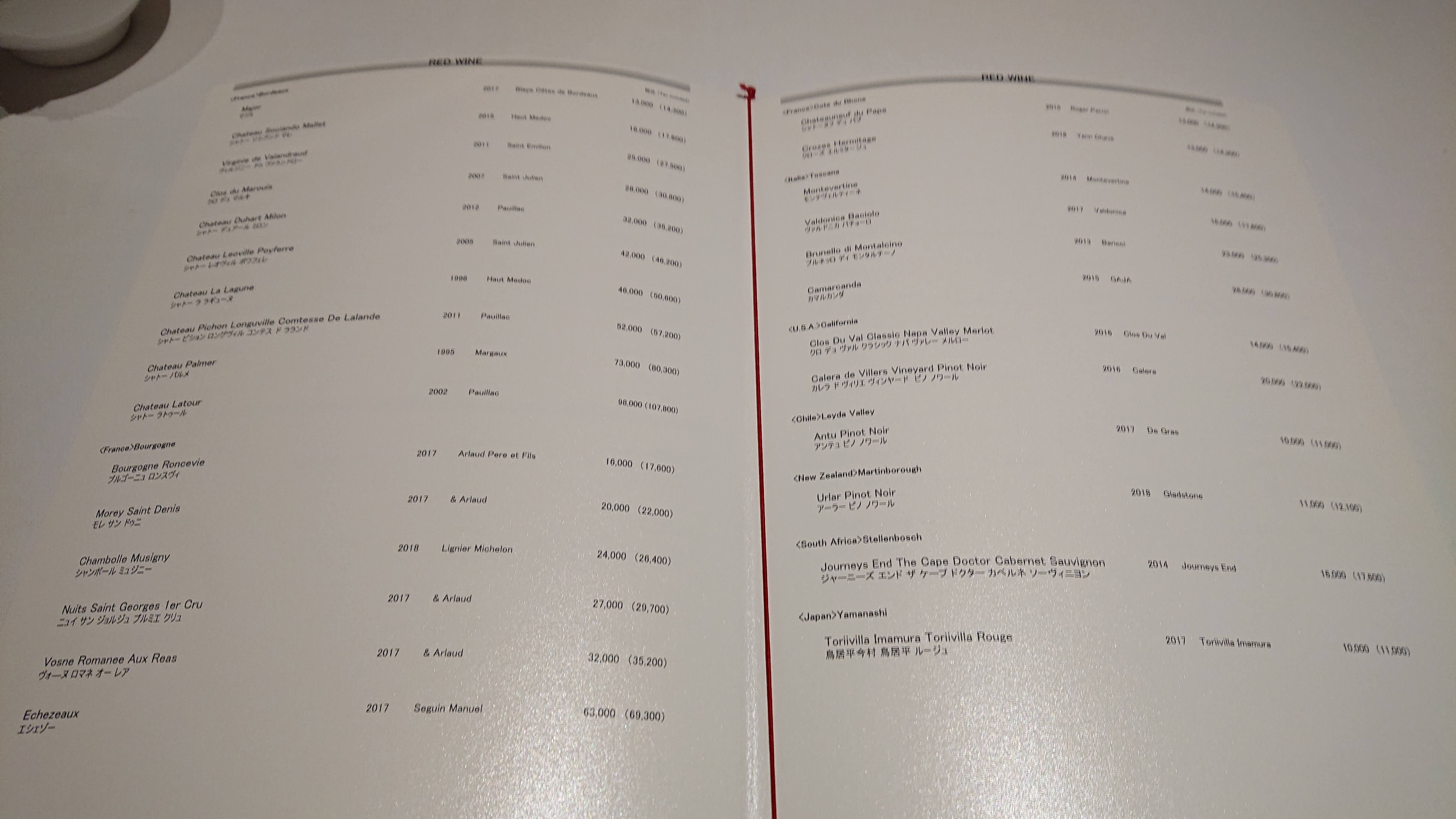 高級なワインがラインナップされています。