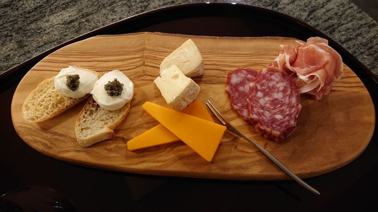 (キャビア、クラッカー、チーズ2種、生ハム、サラミ)