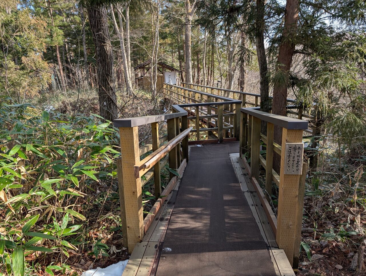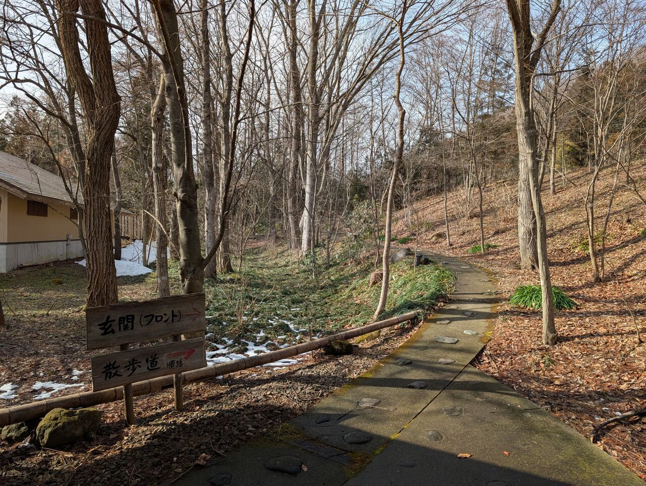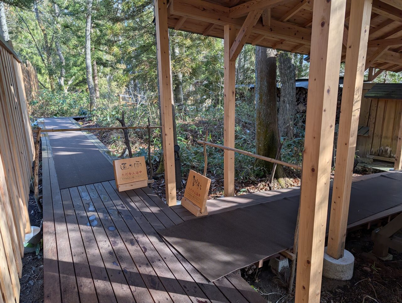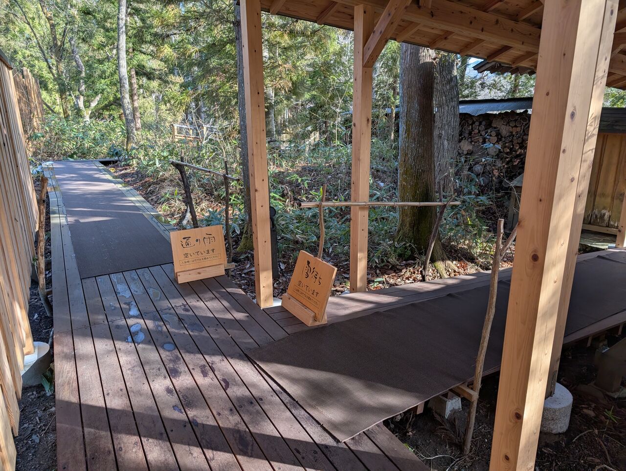 貸切露天風呂 通り雨 雪待ち は、少し離れているので林の中を歩きます。