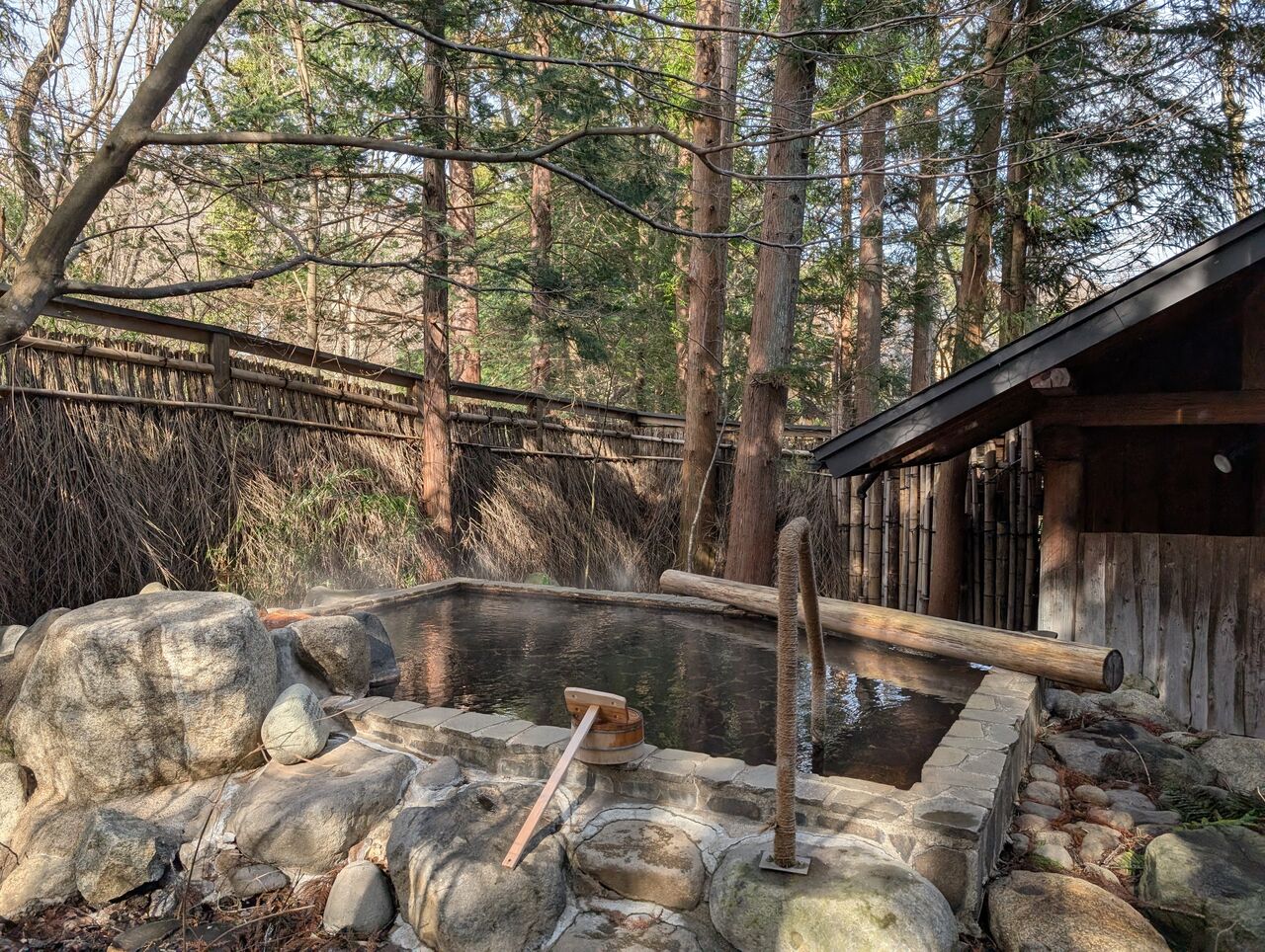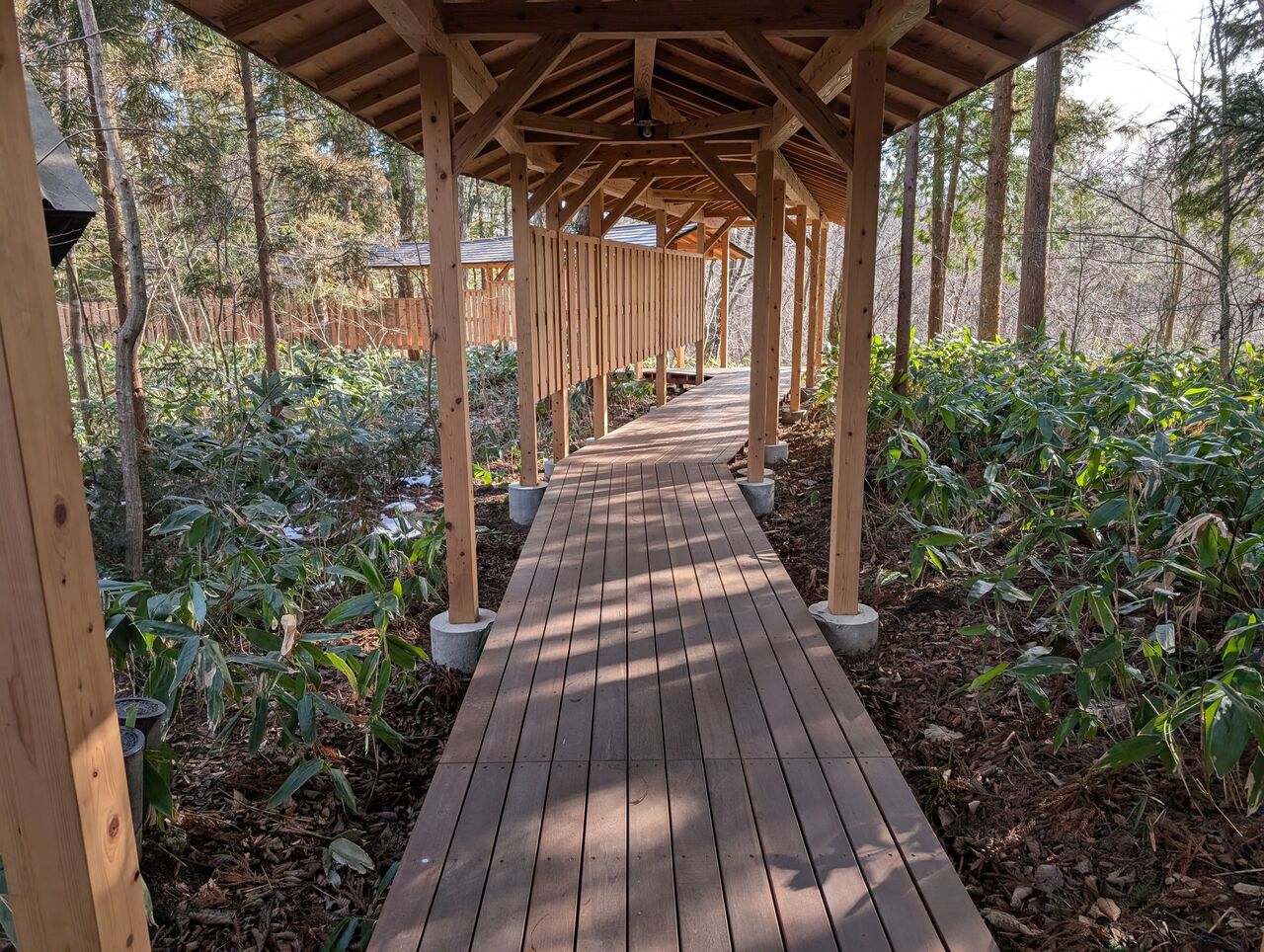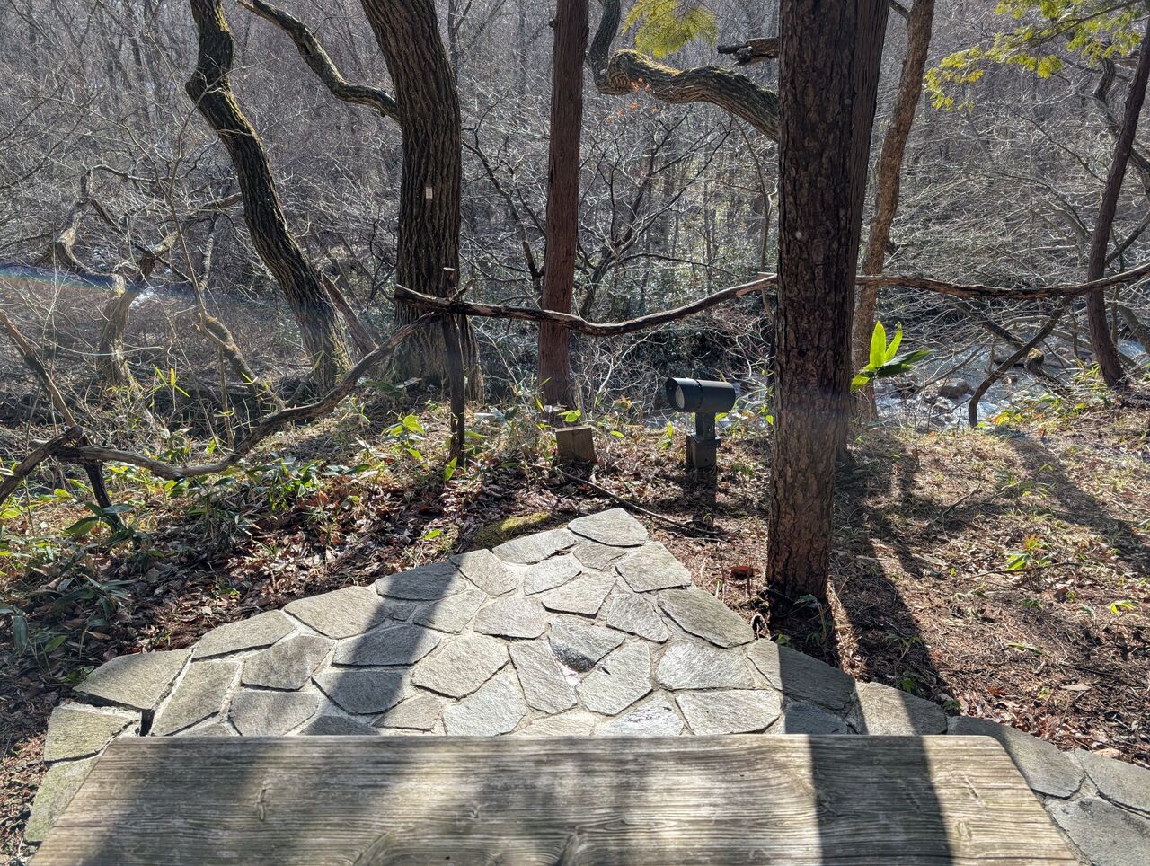 貸切露天風呂 通り雨 雪待ち は、少し離れているので林の中を歩きます。