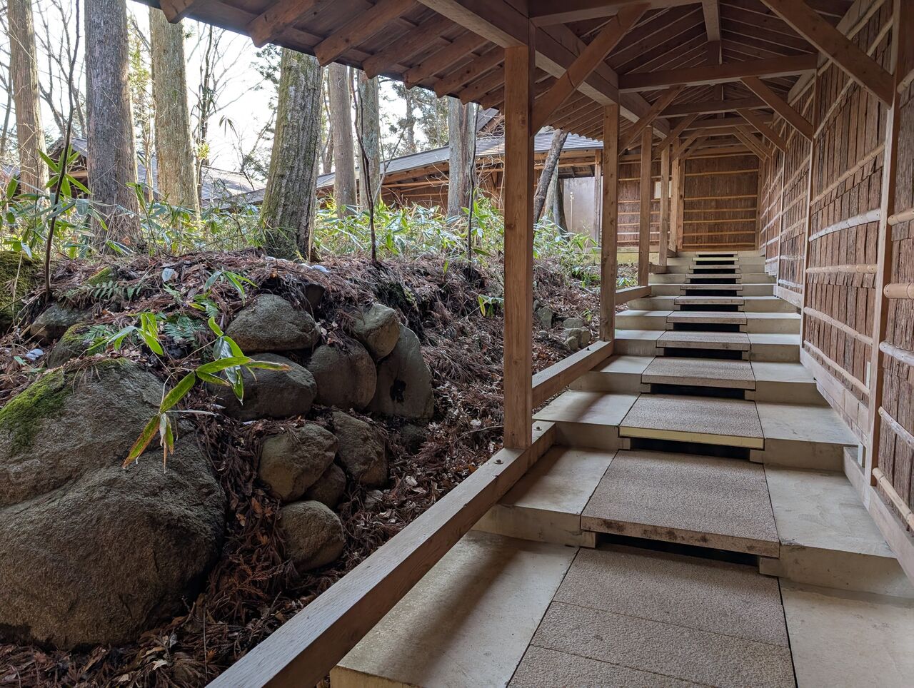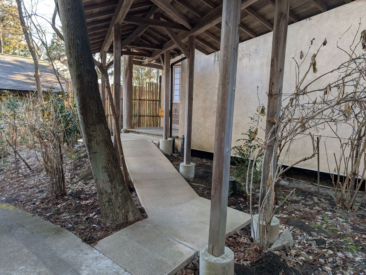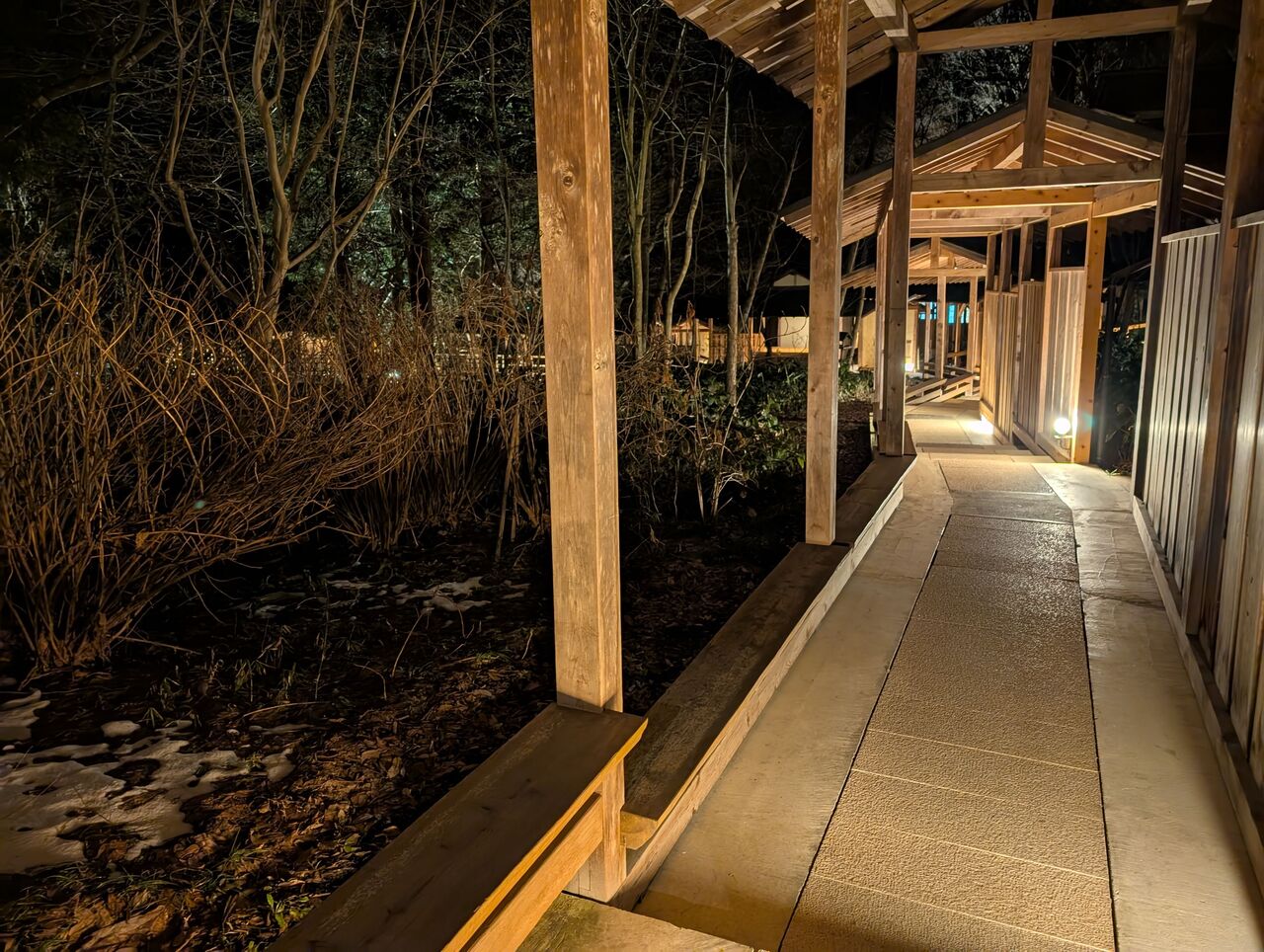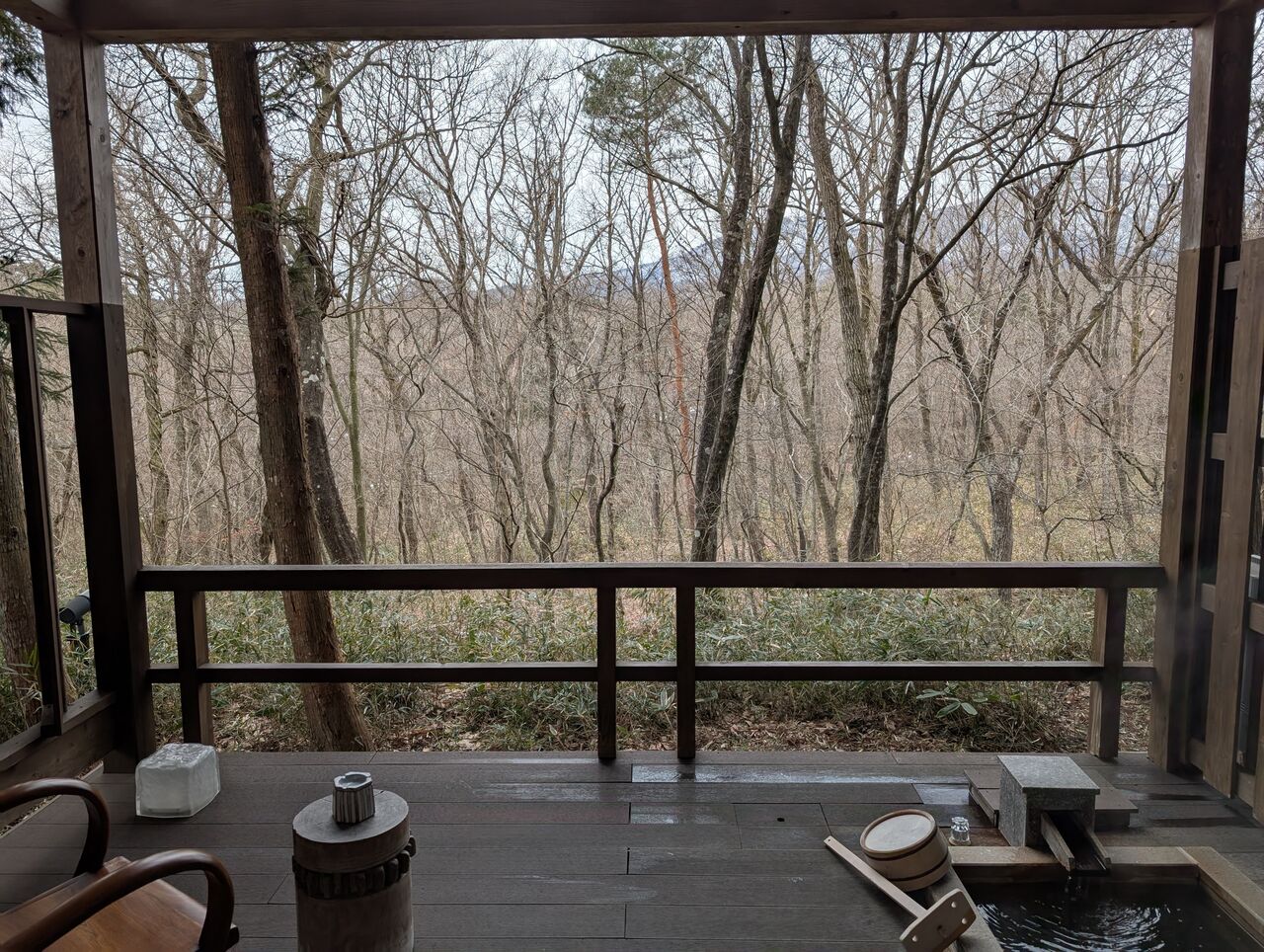 貸切露天風呂 通り雨 雪待ち は、少し離れているので林の中を歩きます。