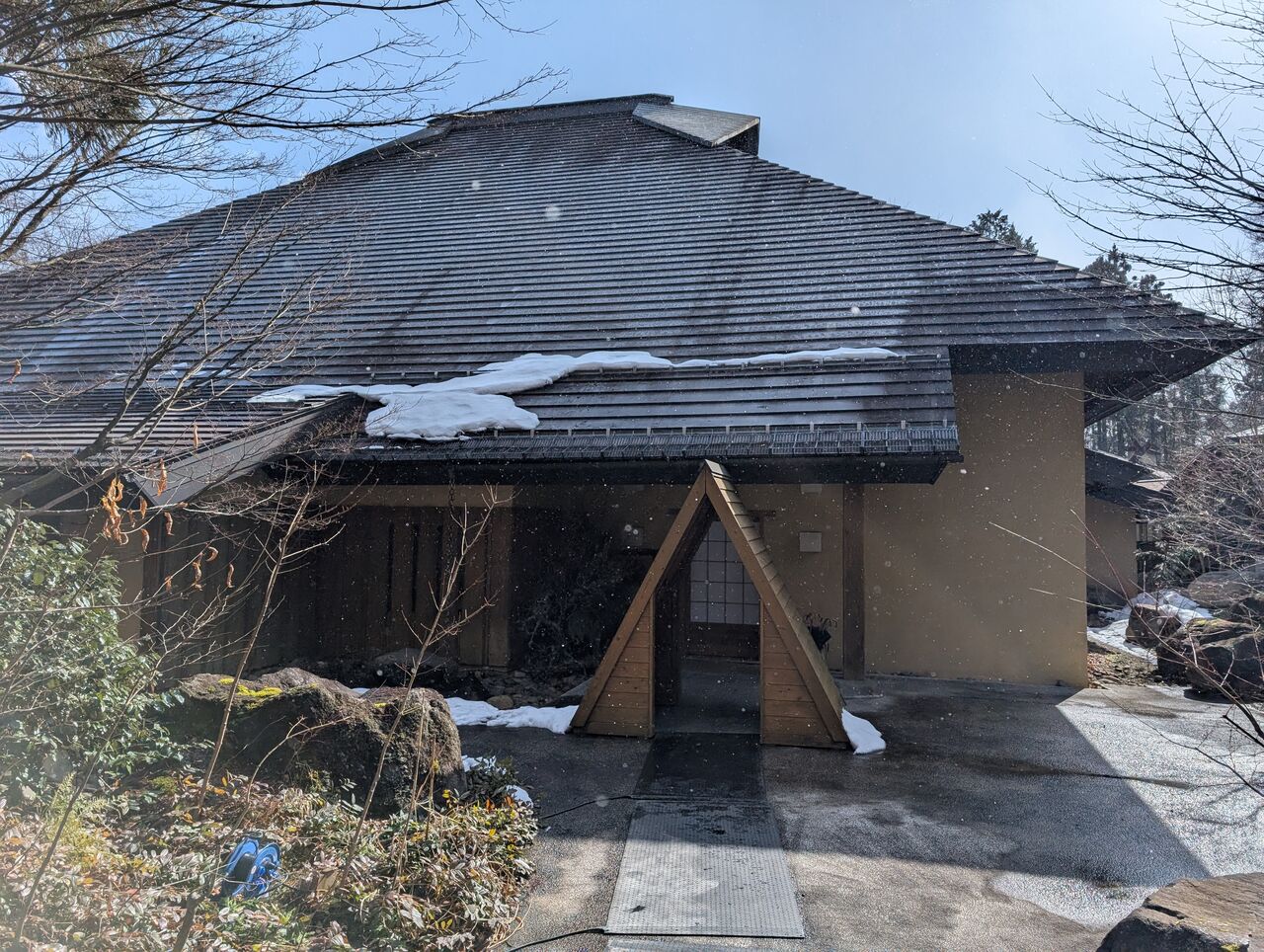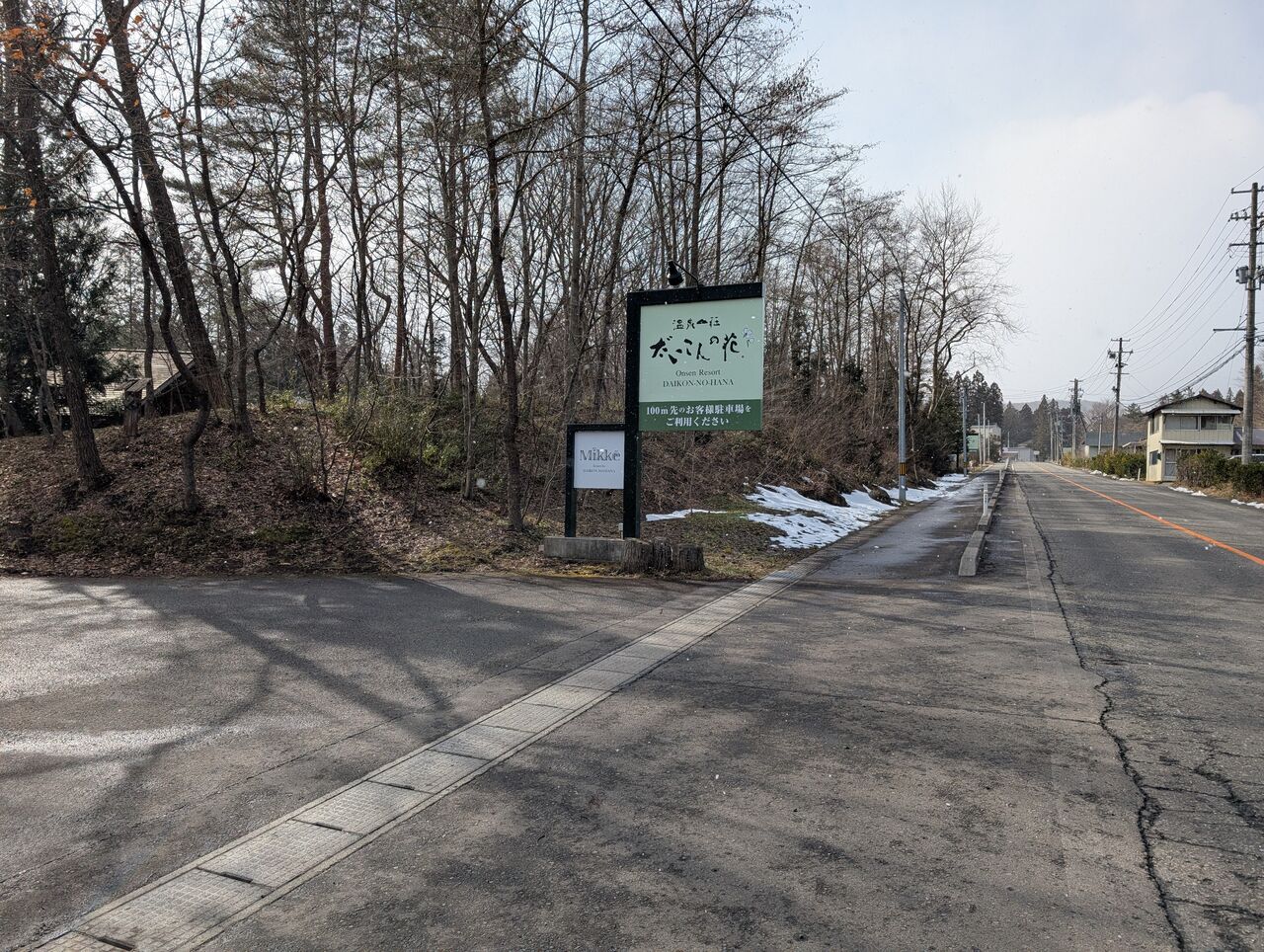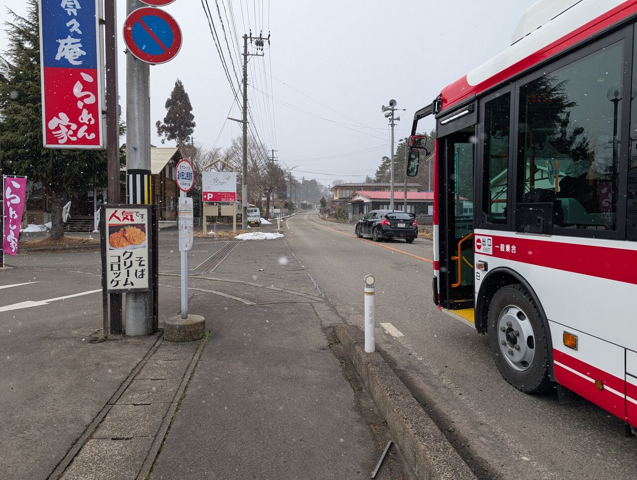 遠刈田温泉バス停の1つ先、遠刈田公民館前バス停で下車します。