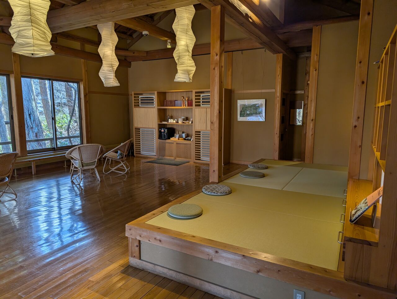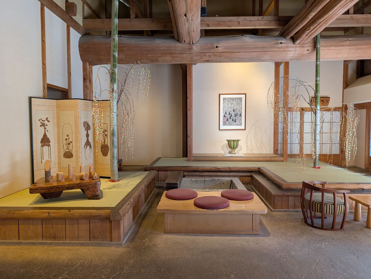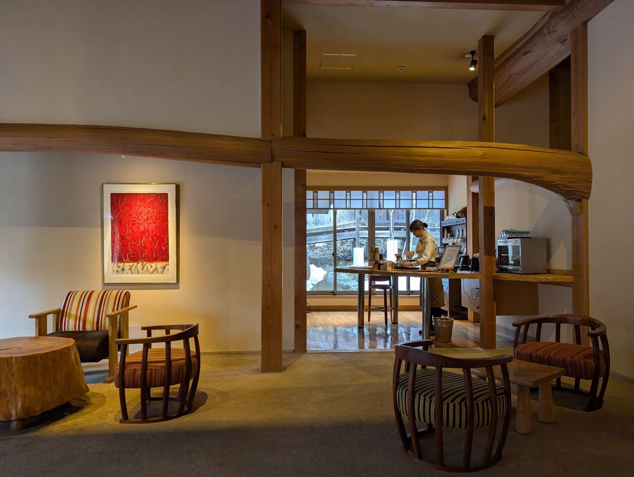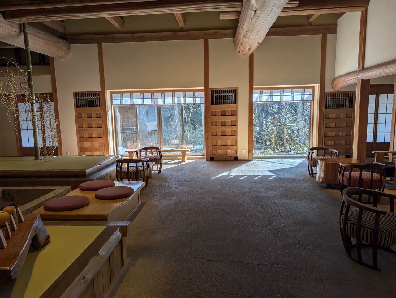 おっしゃる通り、離れでゆったりと過ごす時間も良いのですが、パブリックの充実度もこの宿の楽しみの一つです。囲炉裏で焼き物を楽しんだり、小とりサロンで飲み物を片手にくつろいだり。お風呂もたくさんあるので、湯めぐりも満喫できます。