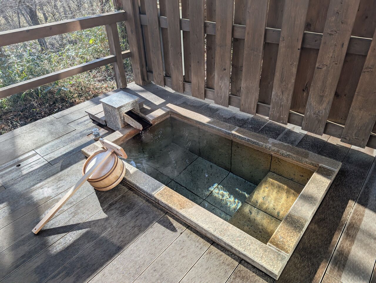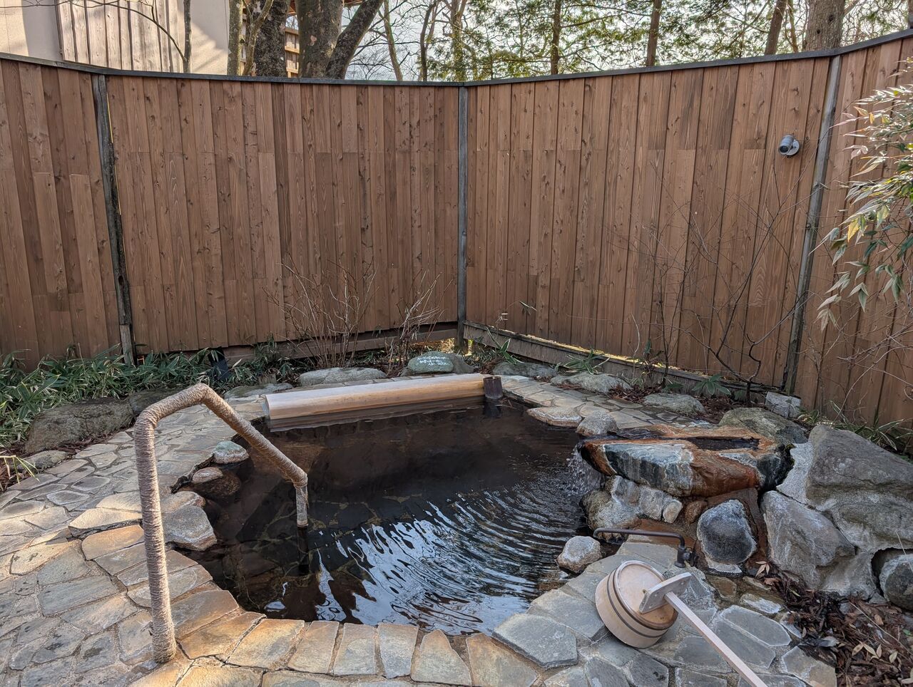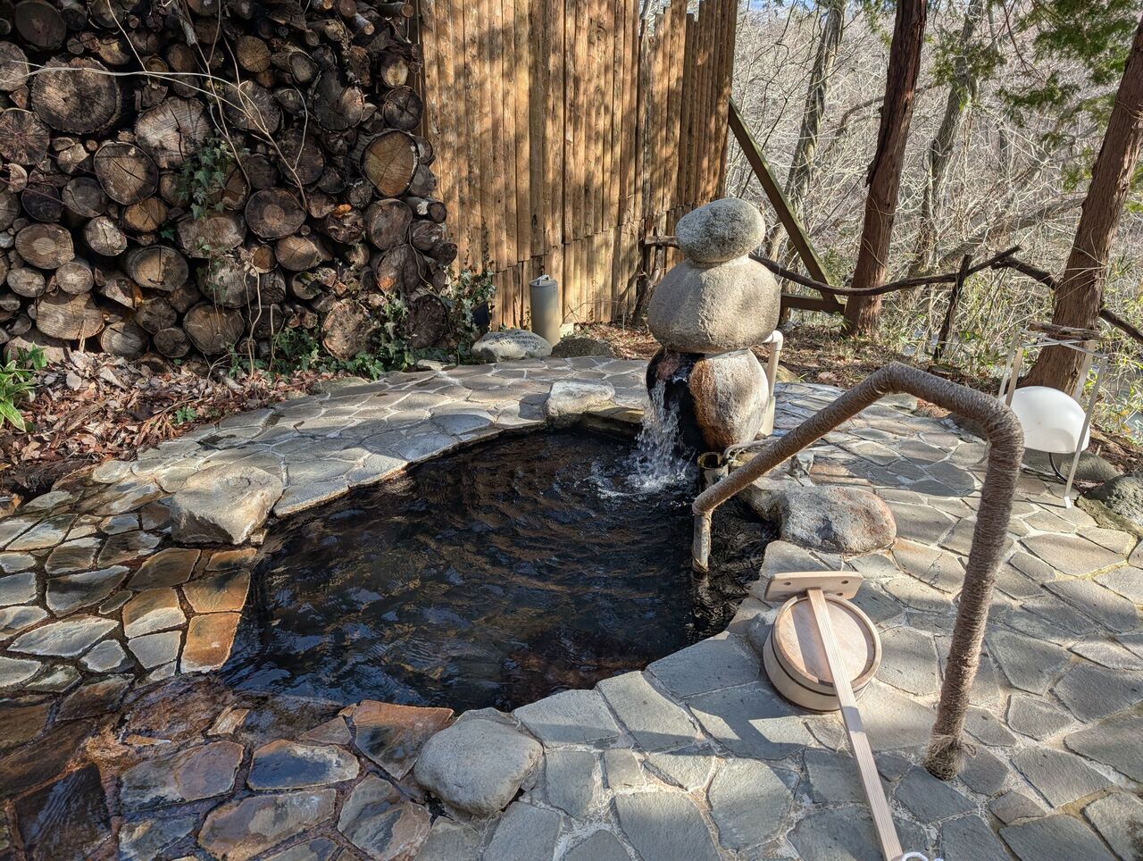 貸切露天風呂は広い敷地内に点在しており、露天風呂巡りも楽しみの一つ。滞在中、飽きさせません。