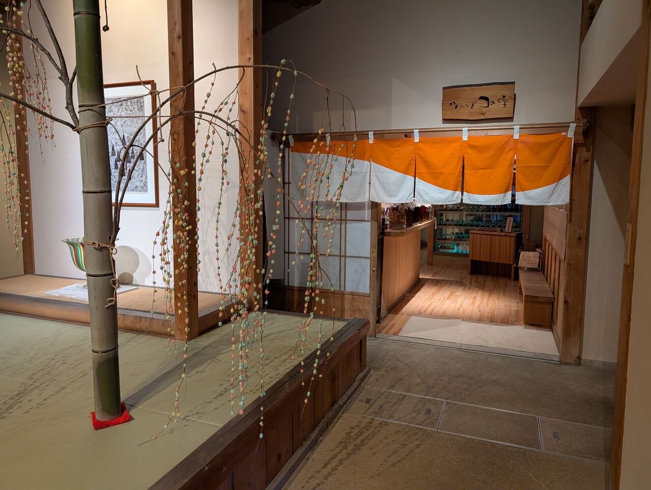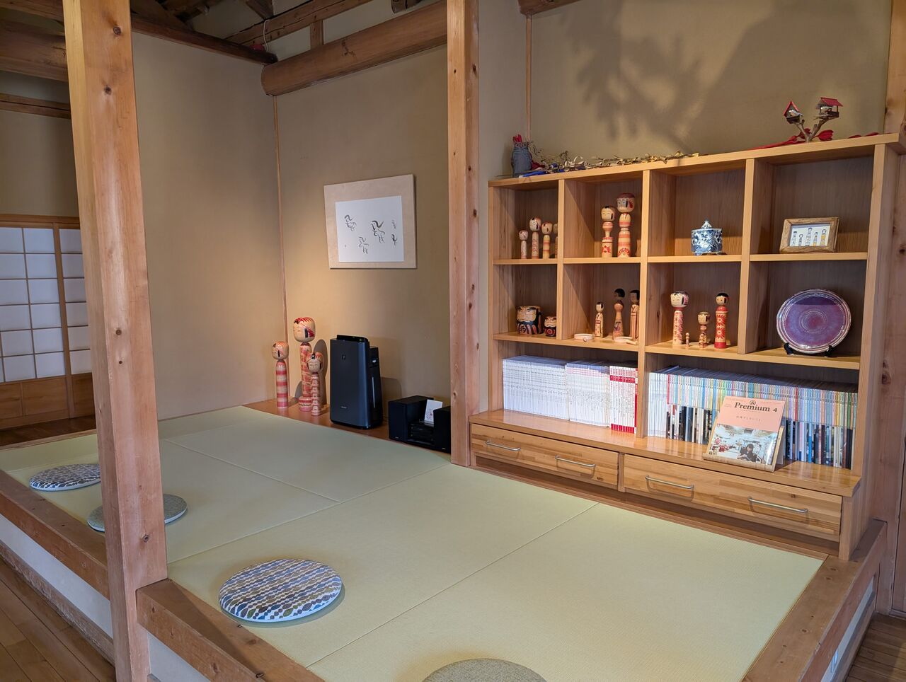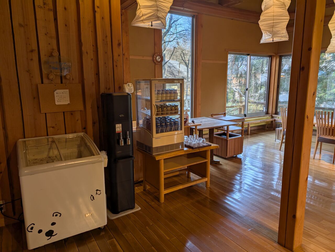 ことりサロンでの飲み物やアイスの提供、囲炉裏端で笹かまぼこを