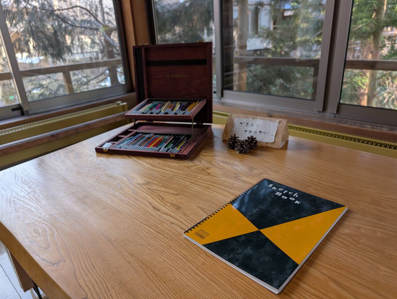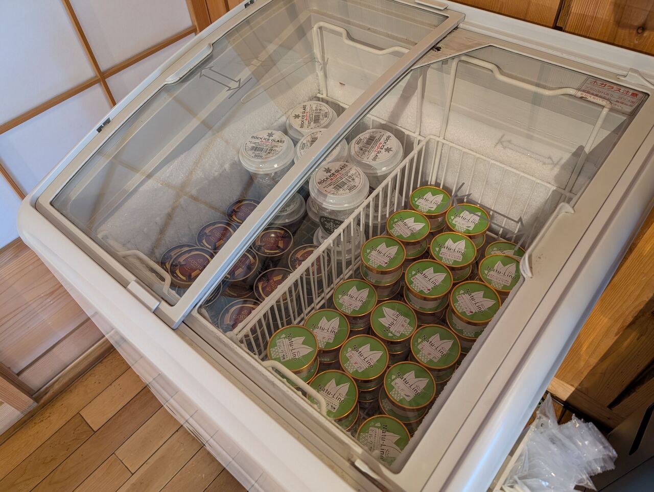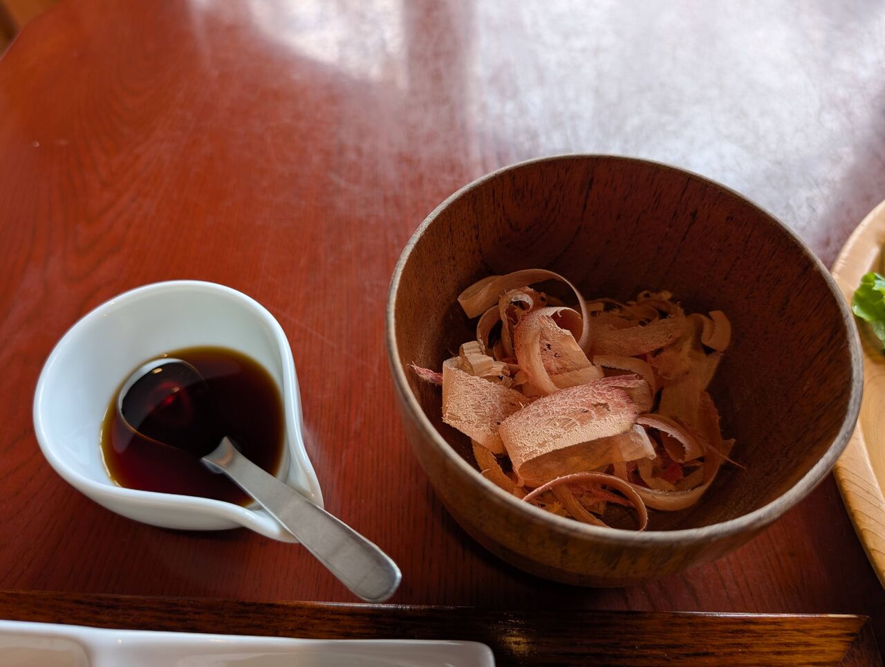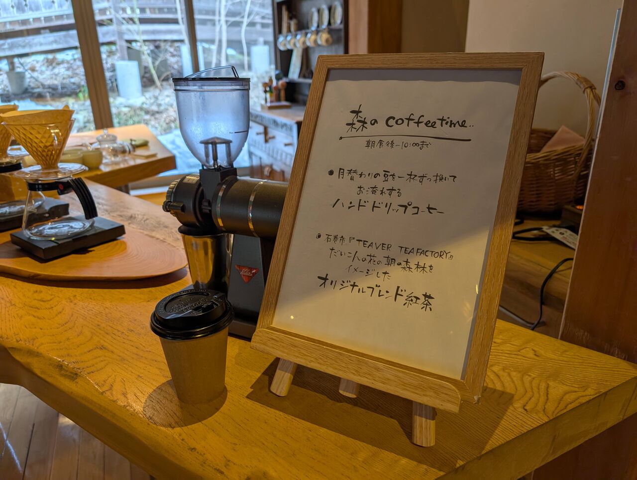 ことりサロンでの飲み物やアイスの提供、囲炉裏端で笹かまぼこを