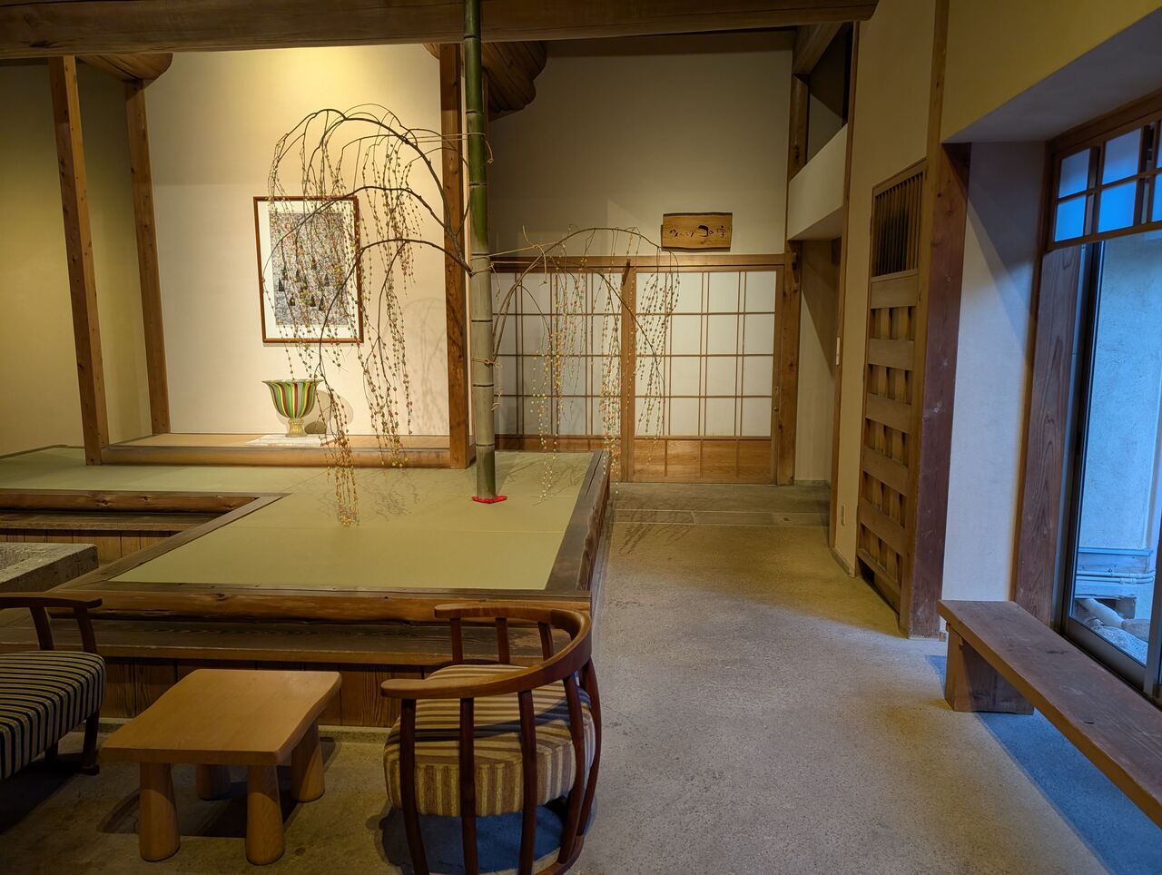 到着した客が3組ほど溜まったところで、部屋の準備ができたとスタッフから声掛かりがありました。小とりサロンで館内の説明を受けて、離れの部屋に案内されます。