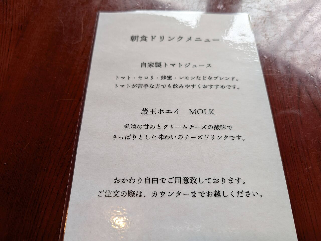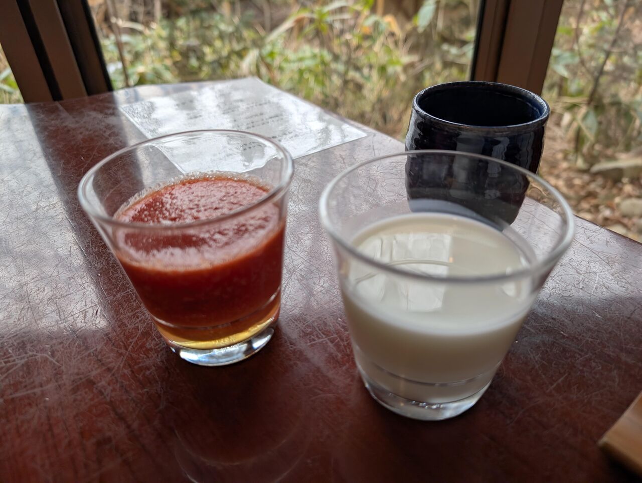 自家製トマトジュース または 蔵王ホエイMOLK。