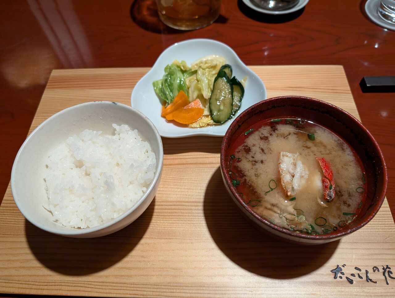 味噌汁は、仙台味噌仕立て宮城県産しじみ。