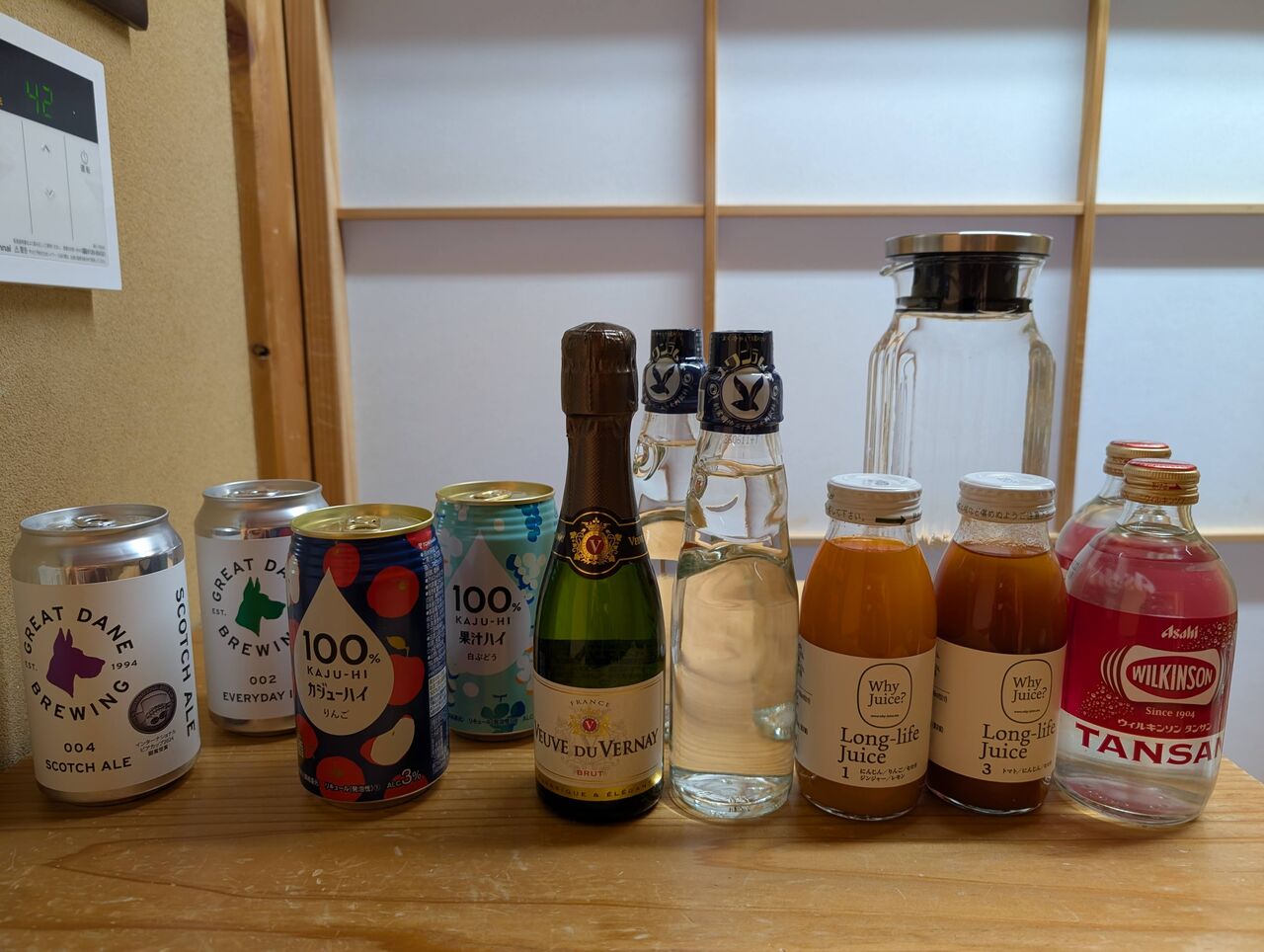 ラムネ、野菜ジュース、ウィルキンソンタンサン。