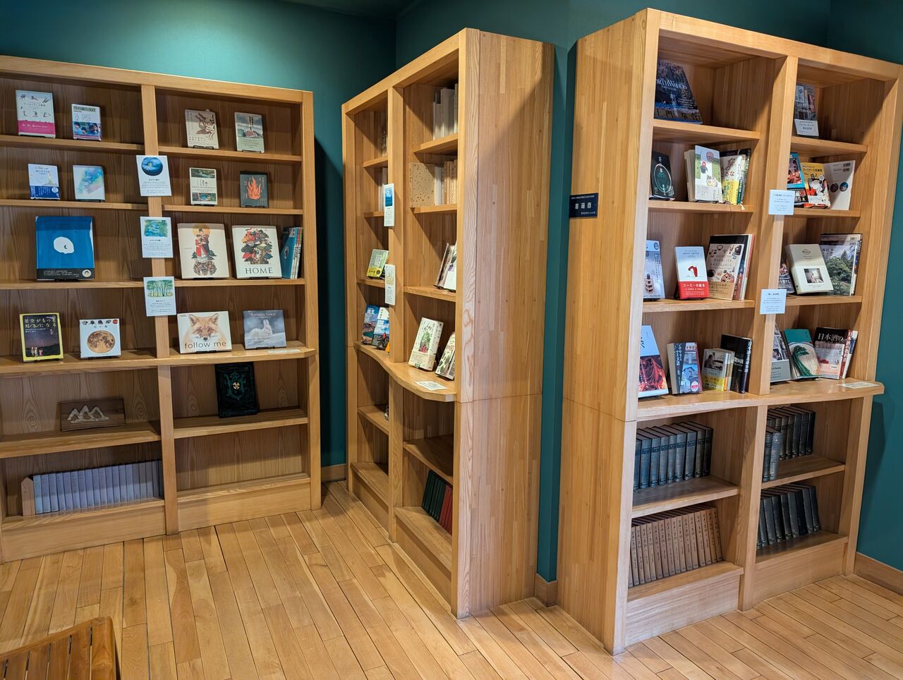 スタッフがセレクトした絵本や書籍が並ぶライブラリー。