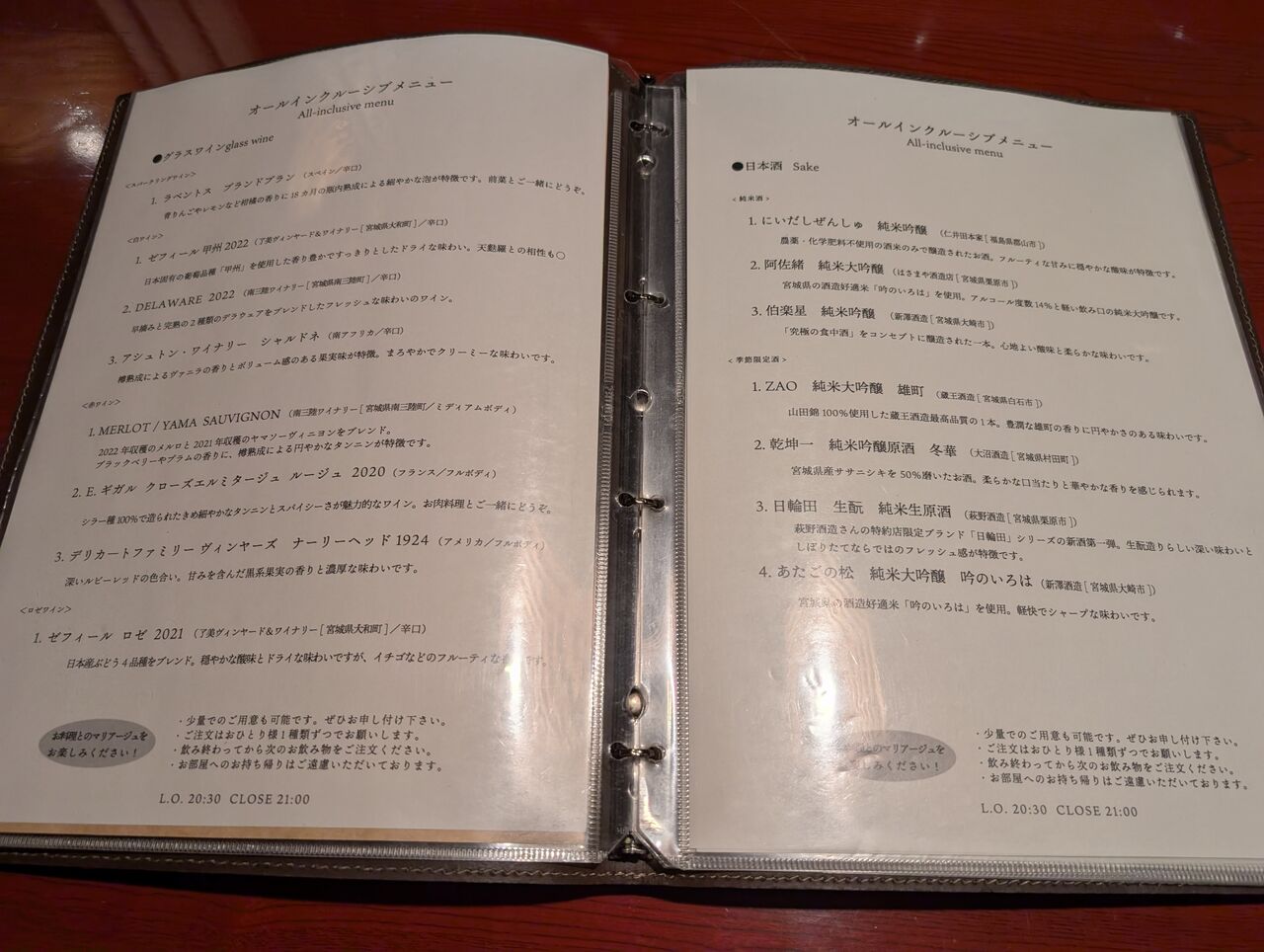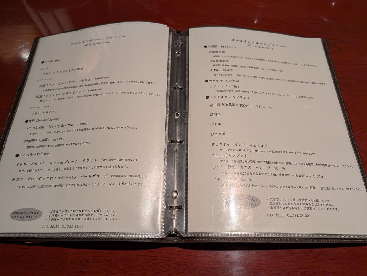 だいこんの花の夕食は、ドリンクのオールインクルーシブが嬉しいサービスです。